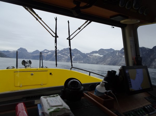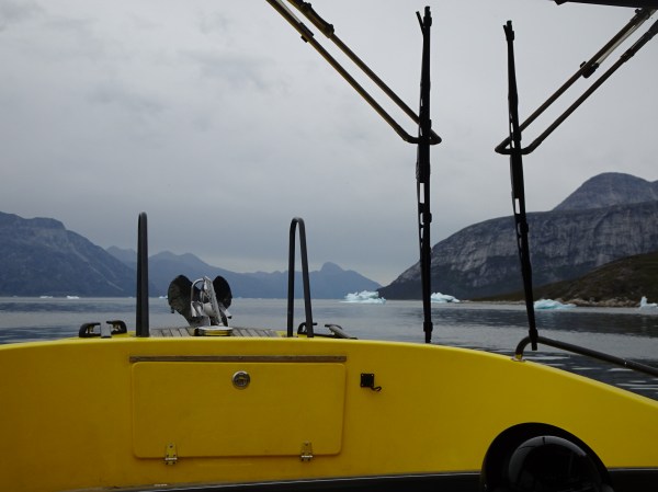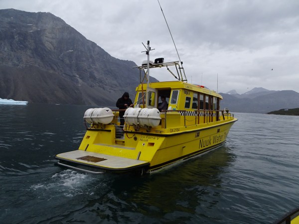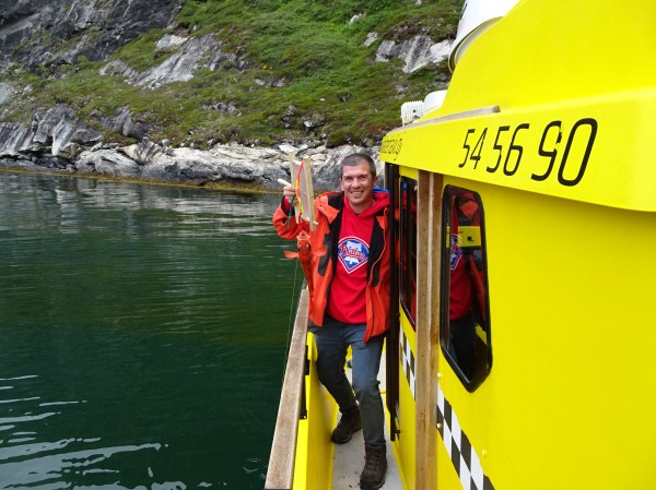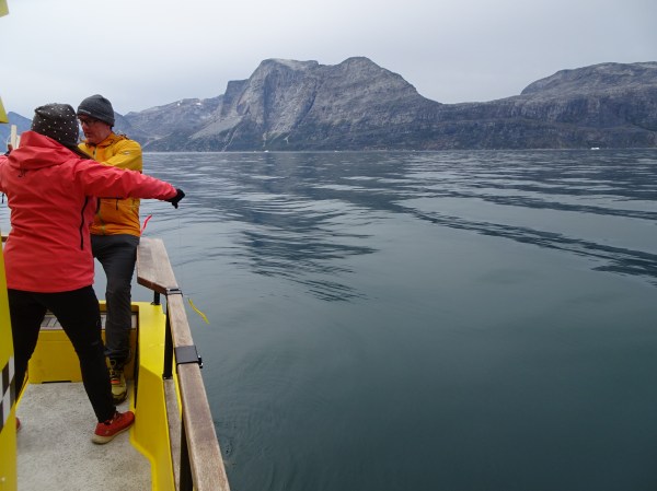 Am plecat împreună vreo 4 bărci în coloană. Nu toată lumea mergea în aceeași excursie – unii se duceau să vadă balenele și pufinii, alții mergeau la ghețar să se cațăre pe gheață. Excursia pe care am rezervat-o însă includea pescuit pe fiord și o cină la Qooqqut, un sat aflat la capătul fiordului. Toate excursiile sunt foarte scumpe, dar o dată ajungi în Groenlanda…