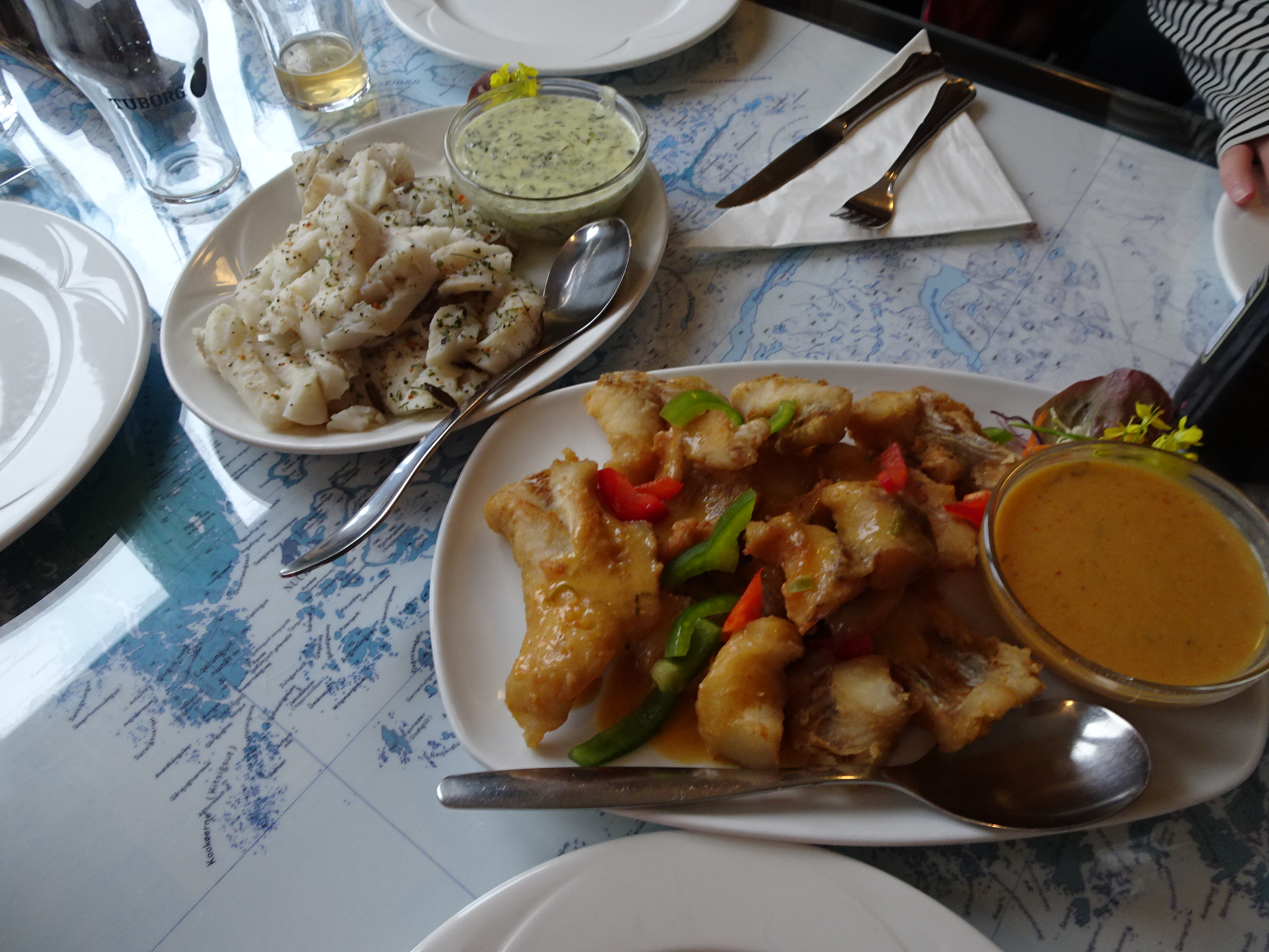 Mai târziu, am servit mâncarea delicioasă făcută din peștele nostru. A fost o cină foarte plăcută pentru că am stat la povești cu ceilalți din grup veniți din diferite colțuri ale lumii. Cam toată lumea care ajunge prin Groenlanda are deja mare experiență în călătorii, astfel că am împărțit cu toții povești frumoase din jurul lumii.