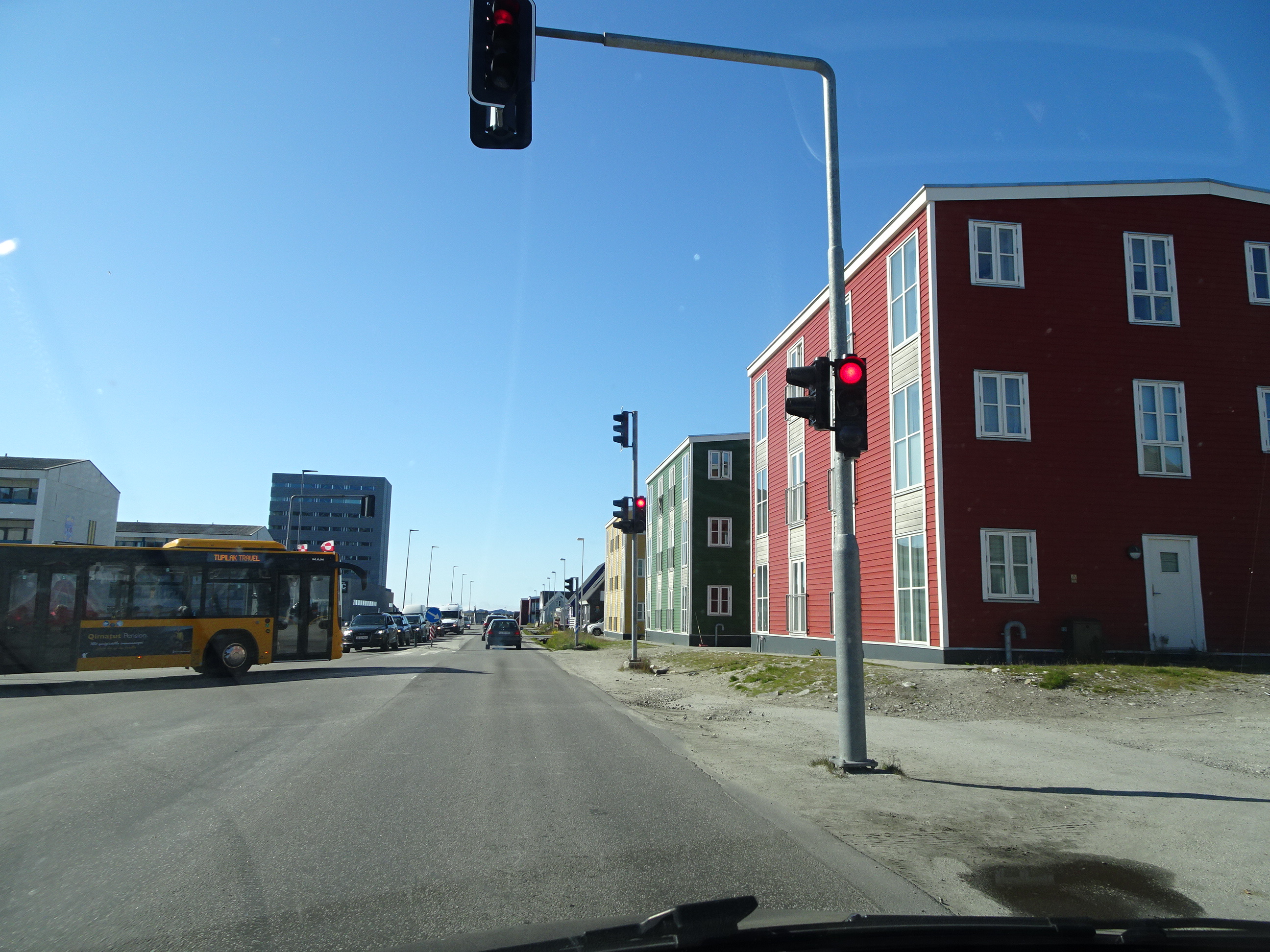 Chiar dacă drumurile nu duc nicăieri (doar traversează orașul și se încheie în localitățile din periferie), am văzut destul de multe mașini și ceva trafic. La Nuuk, de altfel, sunt singurele două semafoare din Groenlanda.