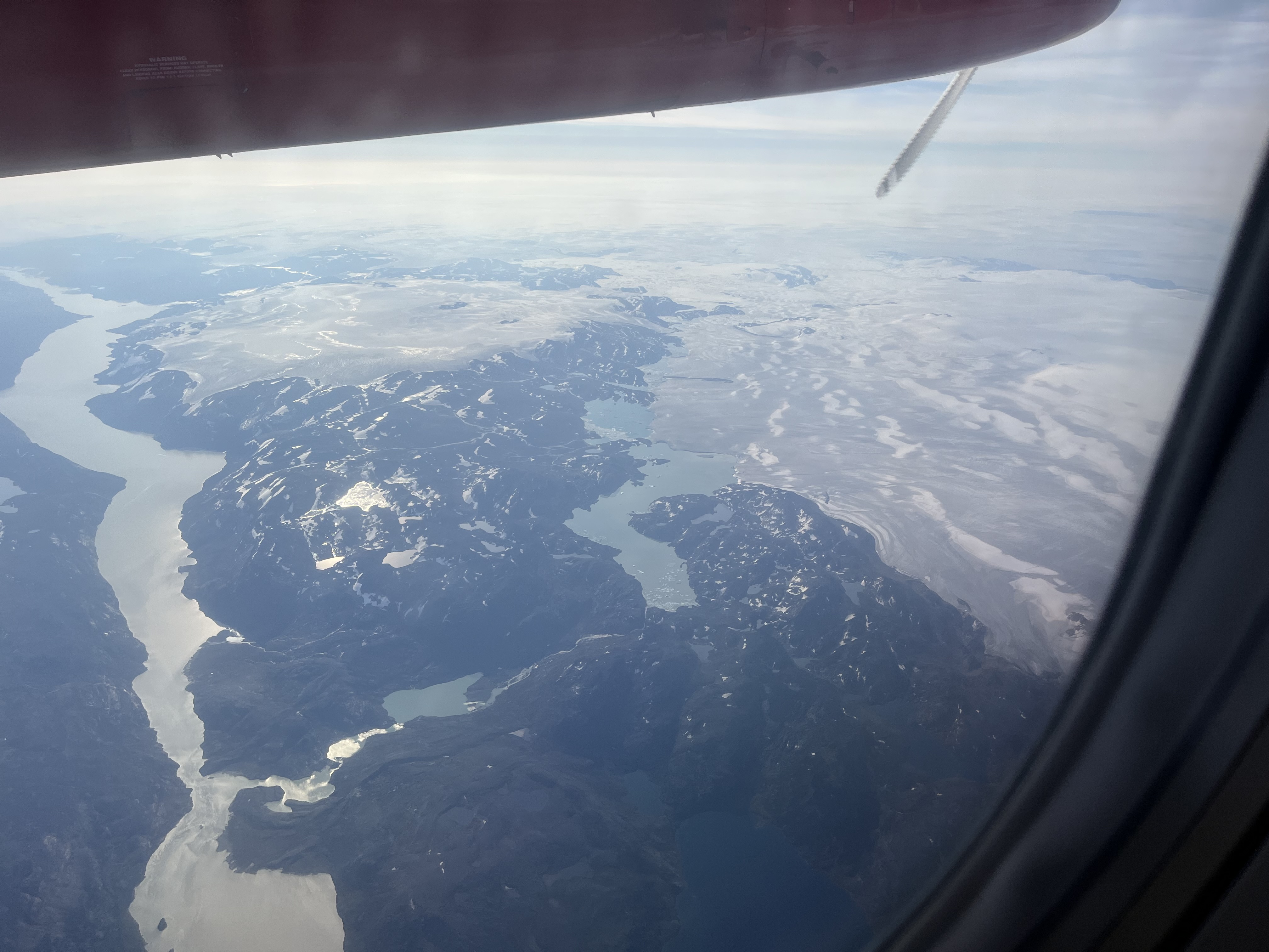 Zborurile interne din Groenlanda sunt faimoase pentru întârzieri și anulări din pricina condițiilor meteo. Din fericire, nu a fost cazul la zborul nostru spre Nuuk. Dimpotrivă, am prins o vreme splendidă și am putut admira peisajul de la fereastra avionului.