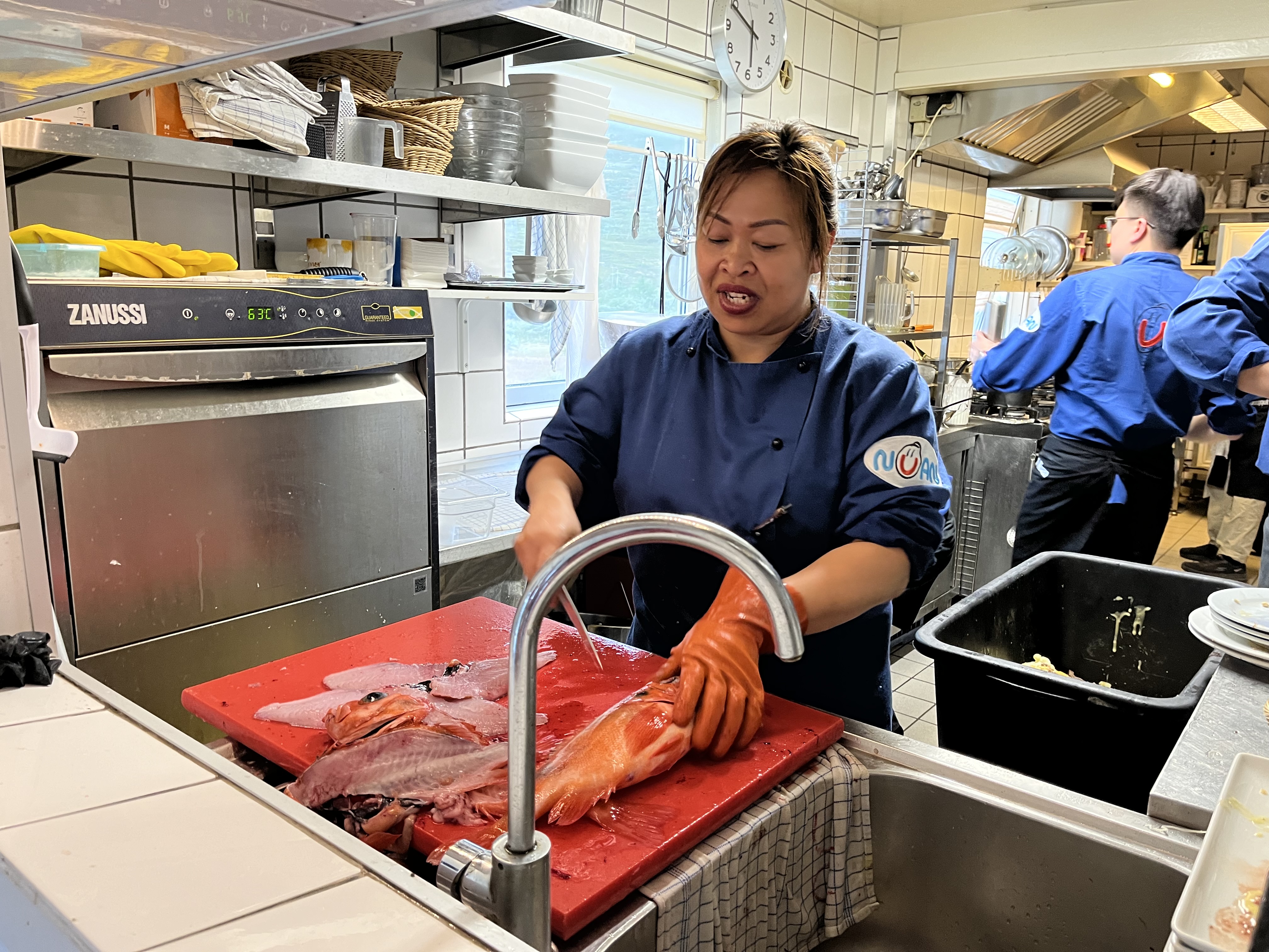Restaurantul are specific thailandez și este o obișnuință ca pescarii să își aducă captura proprie pentru a fi gătită la bucătărie. Am fost invitați și noi acolo, unde am asistat la un „curs” de de-filetare a peștelui iar unii dintre noi au avut ocazia să o facă chiar ei.