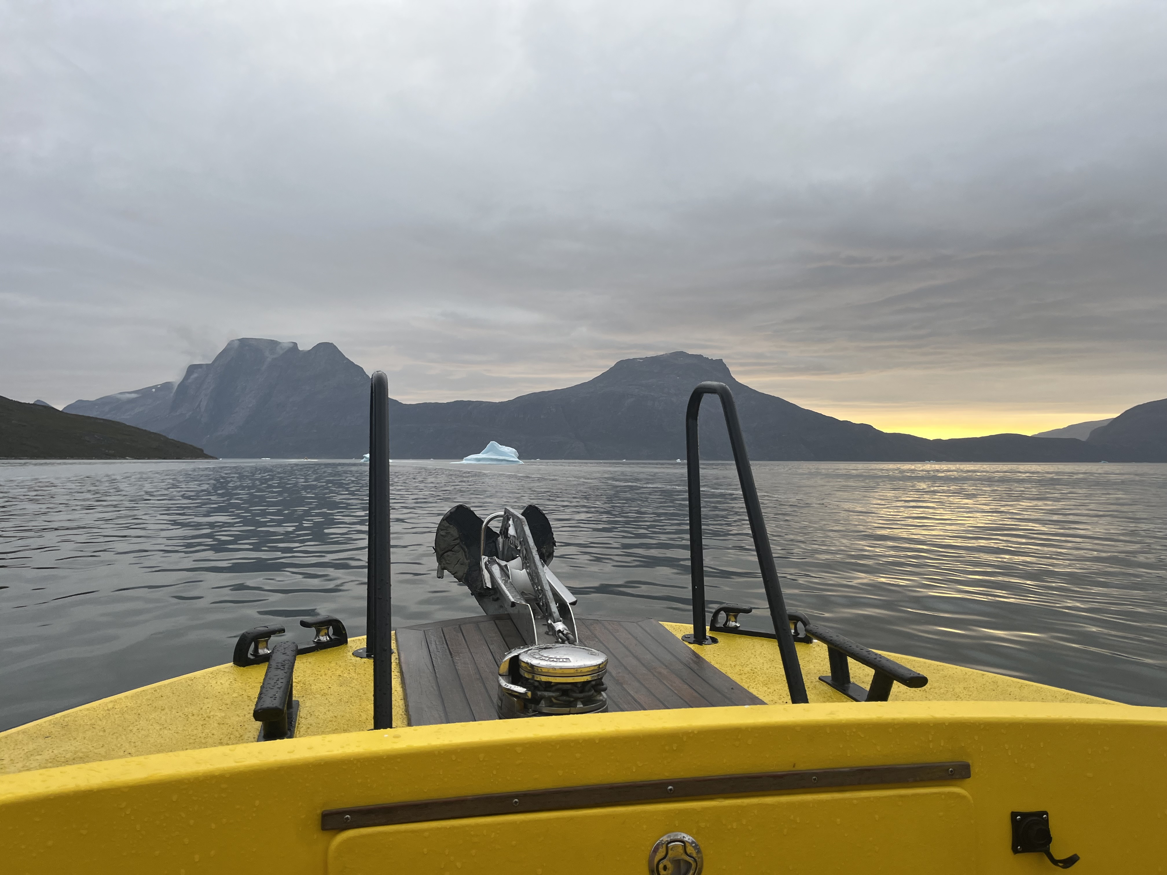 Am plecat împreună vreo 4 bărci în coloană. Nu toată lumea mergea în aceeași excursie – unii se duceau să vadă balenele și pufinii, alții mergeau la ghețar să se cațăre pe gheață. Excursia pe care am rezervat-o însă includea pescuit pe fiord și o cină la Qooqqut, un sat aflat la capătul fiordului. Toate excursiile sunt foarte scumpe, dar o dată ajungi în Groenlanda…