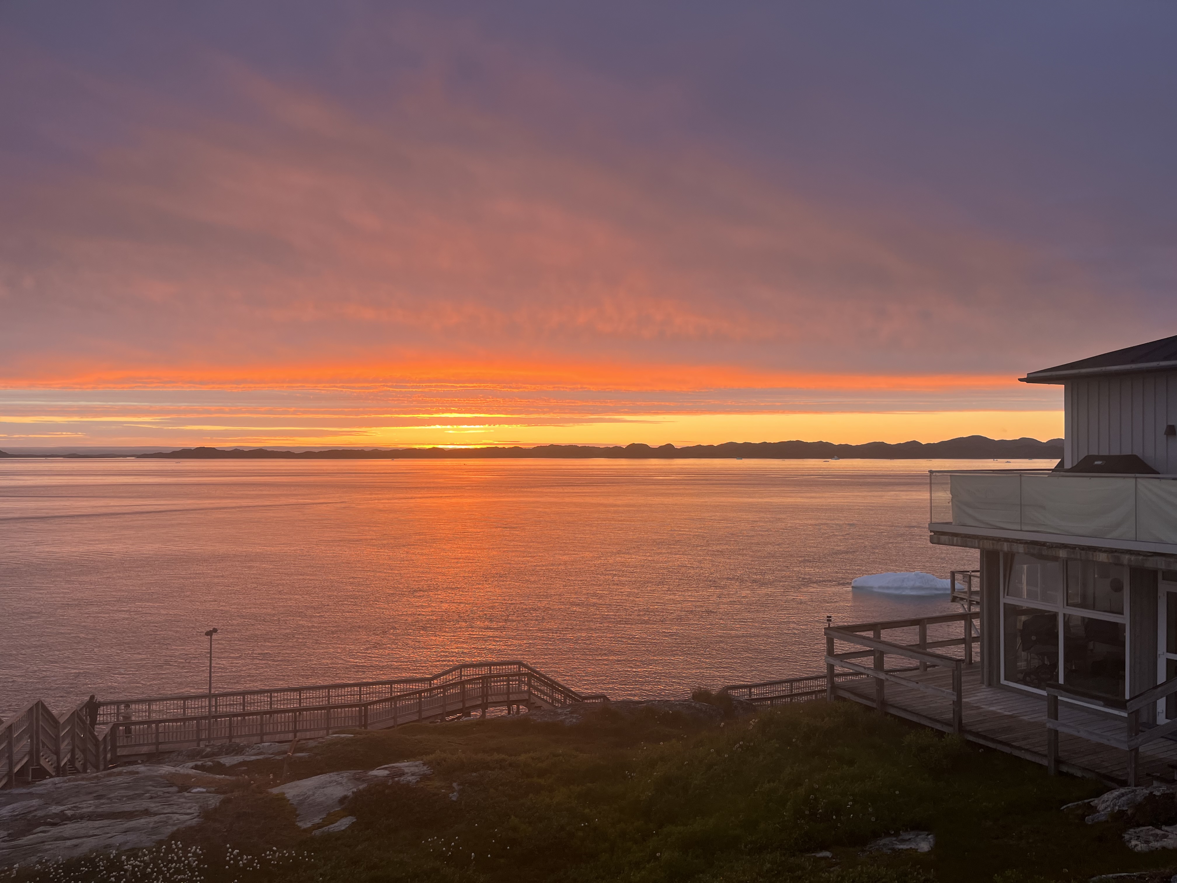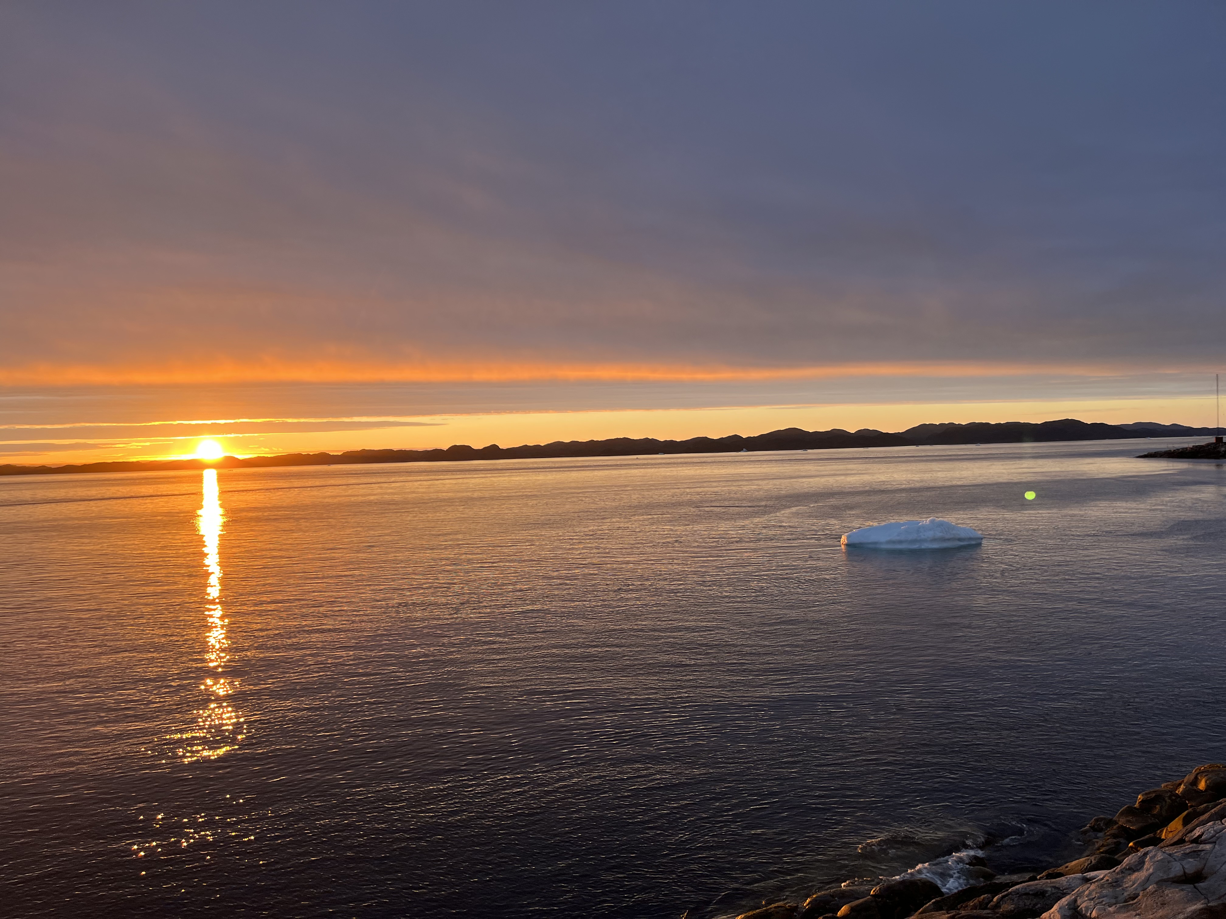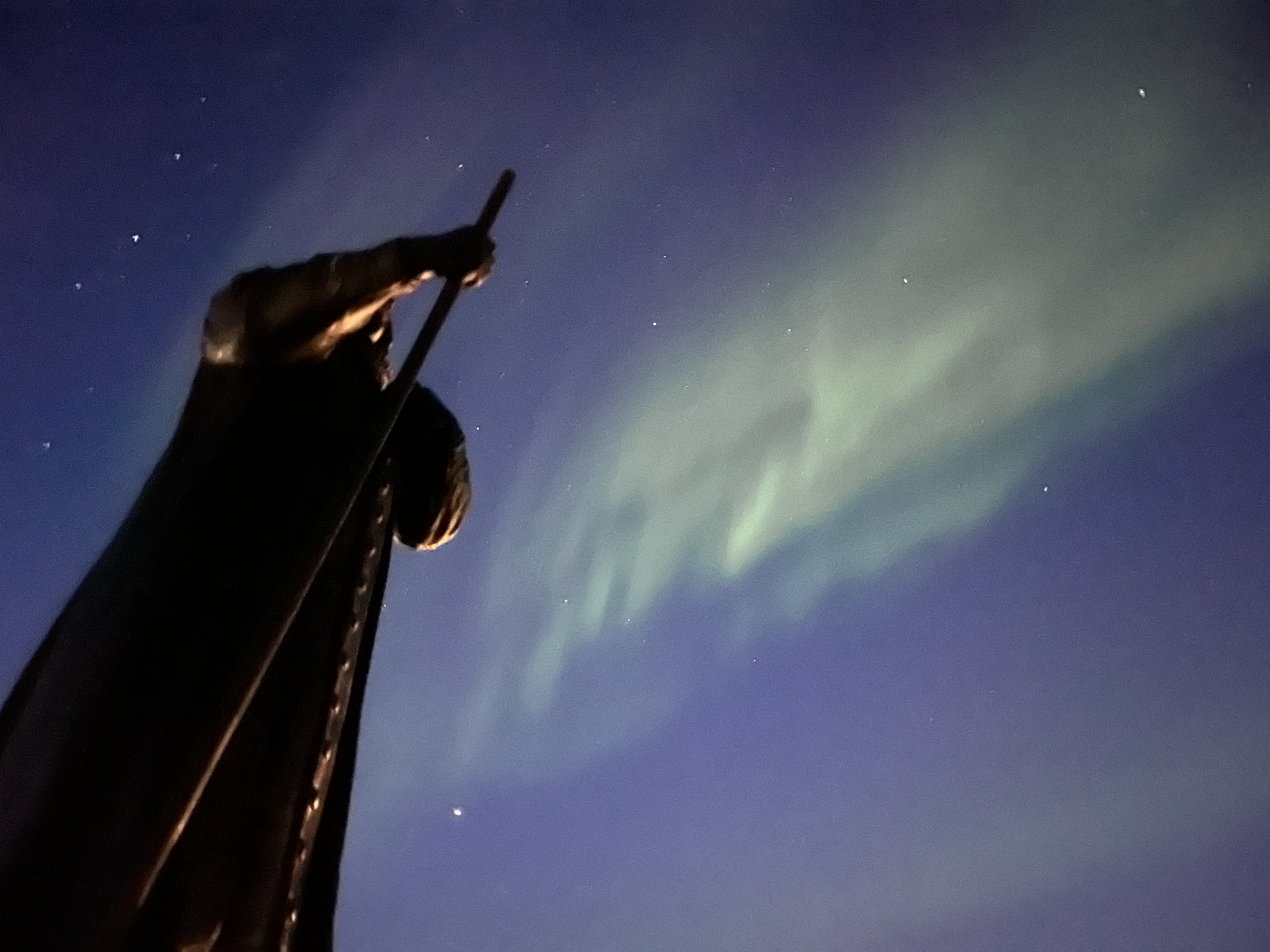 Asta este adevărat în zonele mai nordice, dar la Nuuk (aflat mai la sud) este posibil să vezi luminile nordului în cele 2-3 ore ale nopții când chiar se întunecă atât timp cât apare o erupție solară puternică iar cerul este senin. În acea noapte s-au îndeplinit toate condițiile și ni s-a arătat Aurora. Era atât de puternică încât se vedea chiar din oraș, cu toată lumina de acolo.