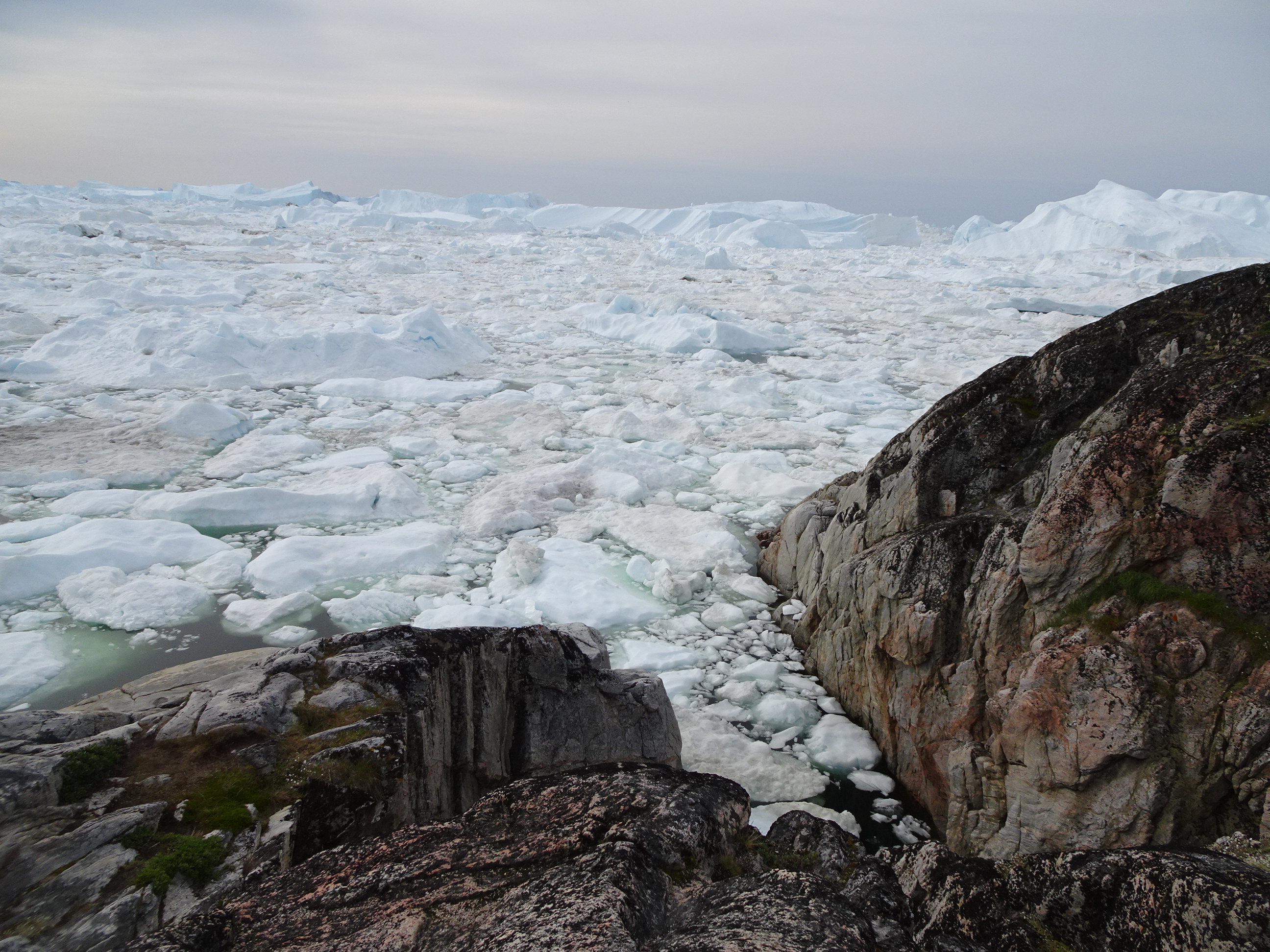 Icebergurile cele mai mari rămân blocate în aceasta pâlnie naturală și nu pot trece de acolo până când nu se topesc suficient pentru a trece de acest dop. Astfel se creează marea de iceberguri. Cele mai mari blocuri de gheață pot sta și mai mulți ani aici, pentru că la venirea iernii tot golful îngheață la loc. Tot peisajul acesta creat de natură e ceva fantastic.