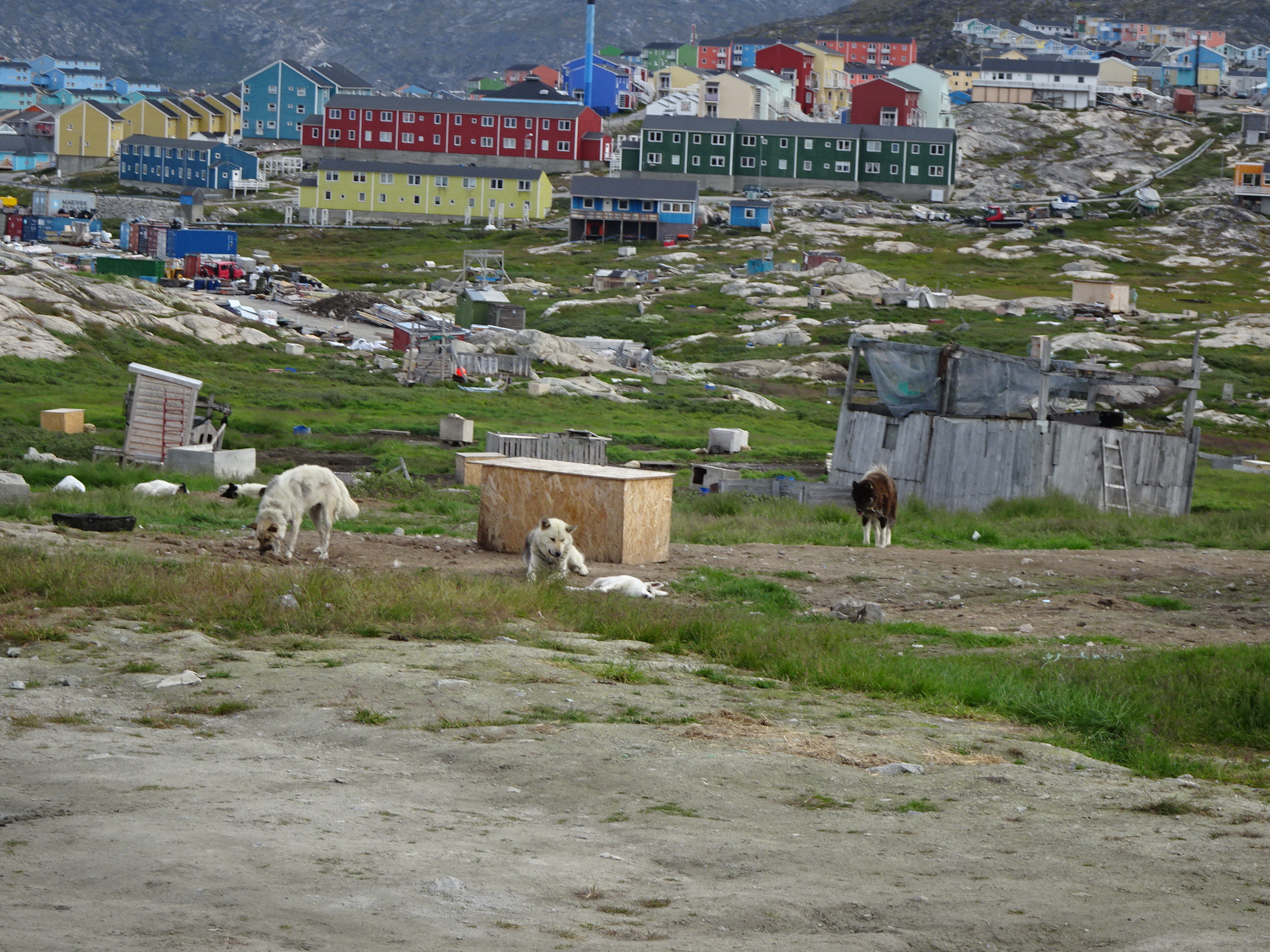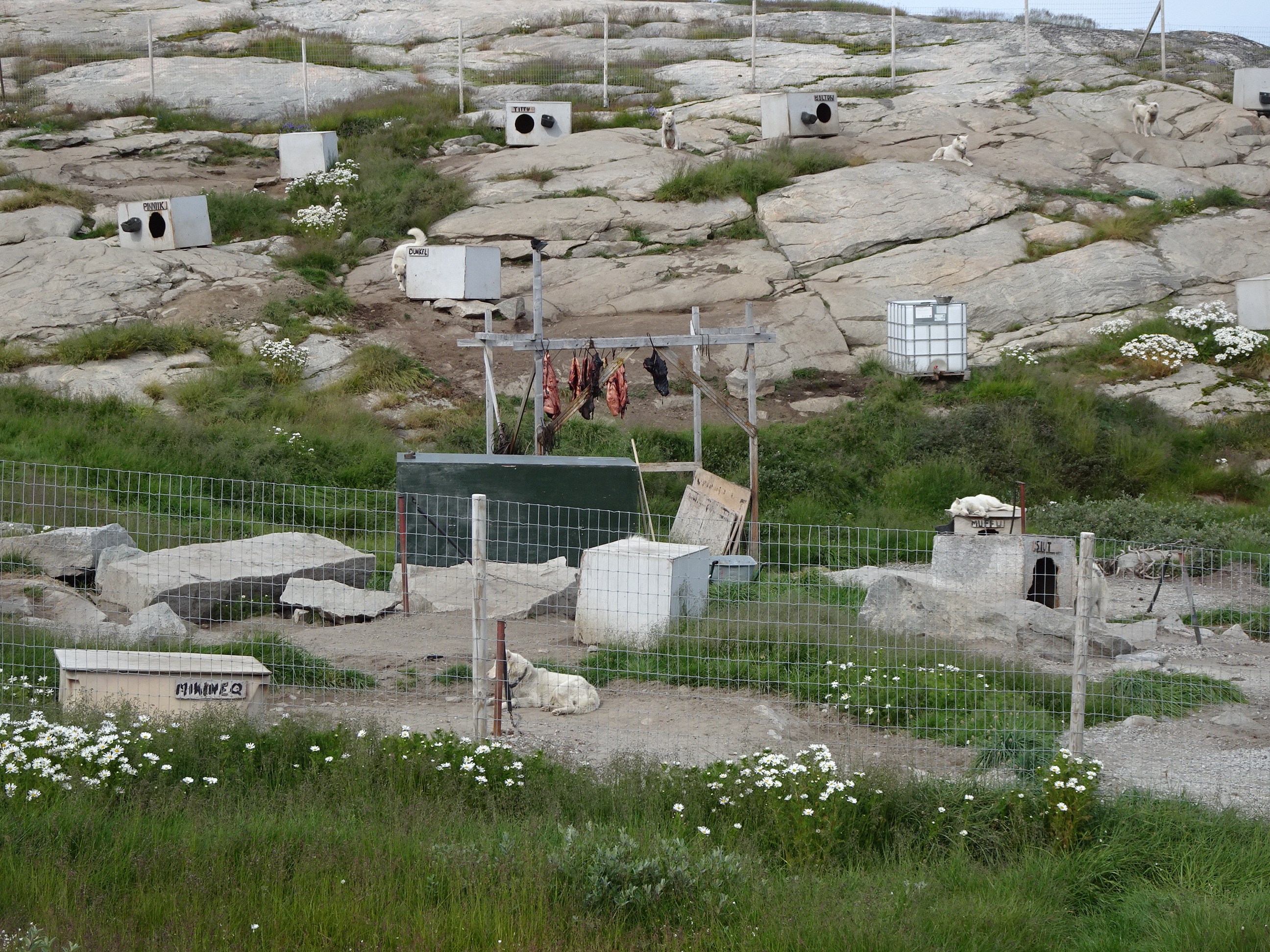 Am trecut în drum printre adăposturile câinilor husky. Sunt câțiva mii de câini în oraș, folosiți pentru a trage săniile pe zăpadă – principalul mijloc de transport pentru localnici și turiști pe timp de iarnă. Vara ei șomează, dar sunt îngrijiți cu mare atenție de stăpâni.