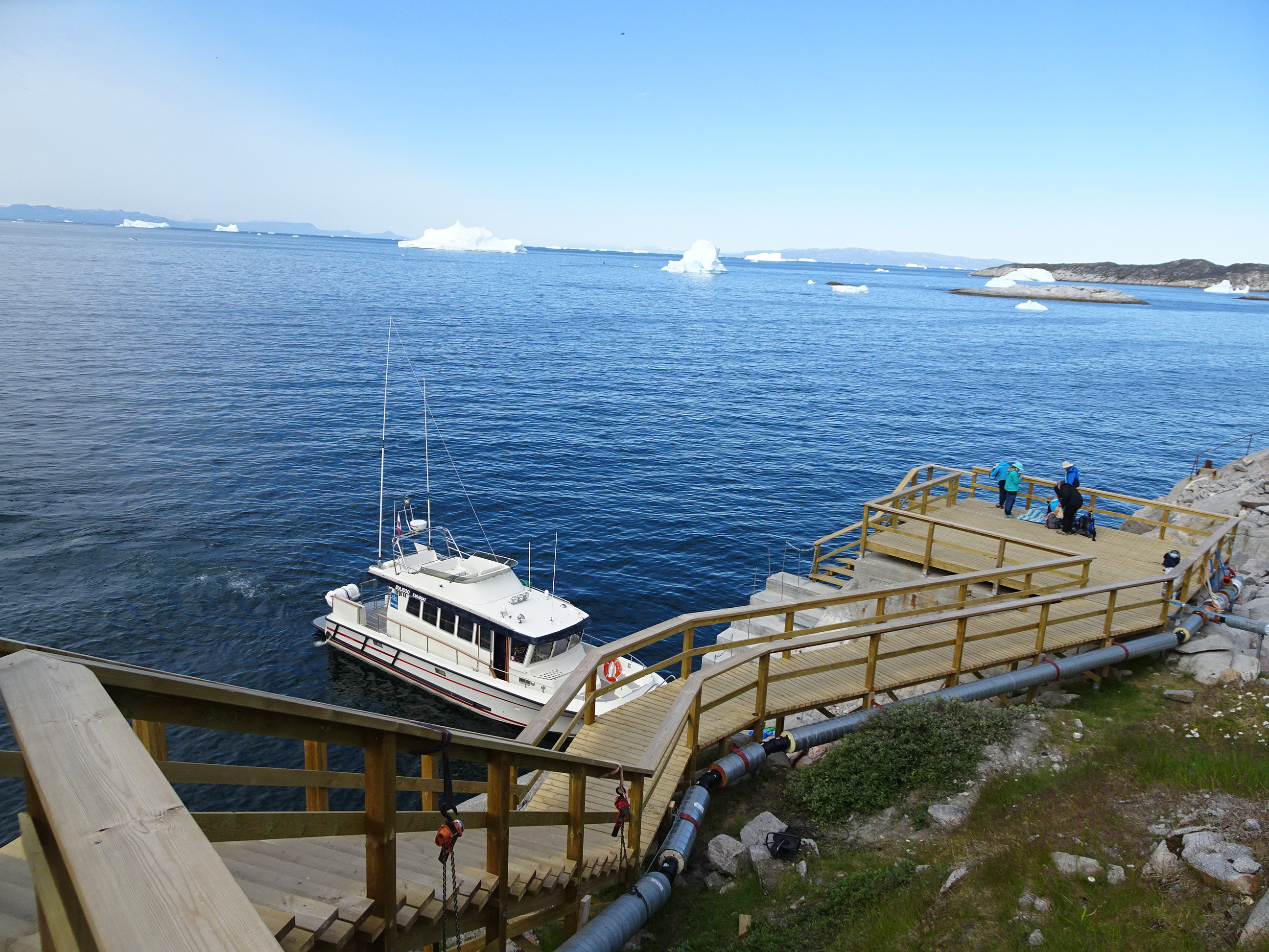 Barca companiei Disko Line era mare și putea primi până la 30 de pasageri. Din pricina anulărilor de zboruri, eram numai 4 turiști pe barcă. Ghizii care ne-au primit au glumit că avem parte de un tur privat.