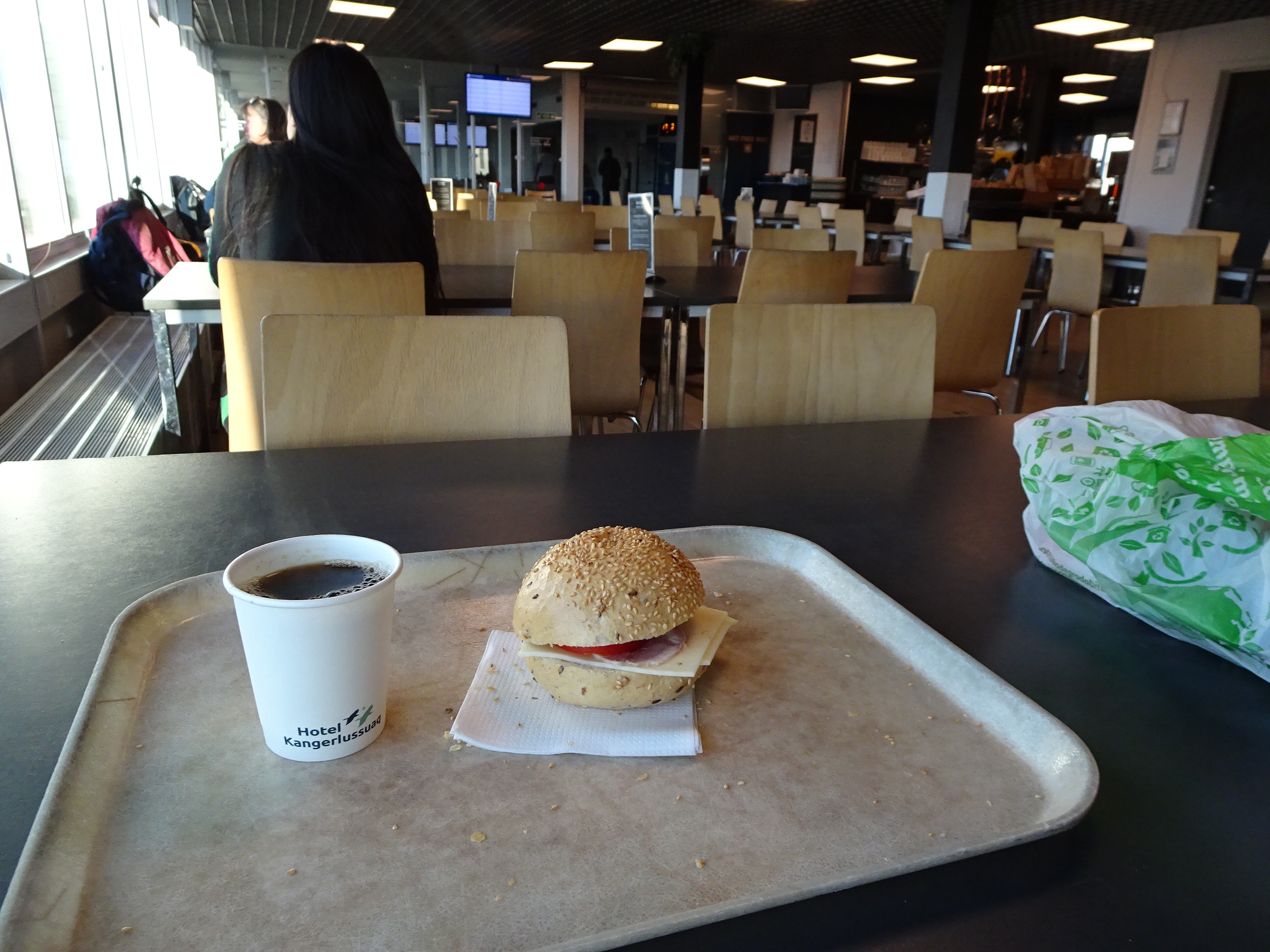 Noaptea următoare a fost una interesantă. După toate schimbările de zboruri nu mai aveam cazare rezervată. Știam deja că o să fie complicat pentru că toate camerele din Kangerlussuaq erau ocupate. Am petrecut seara la barul din aeroport ia cele câteva ore de noapte le-am petrecut în terminal. Eram zeci de pasageri în situația asta. Până la urmă n-a fost deloc rău: am și dormit puțin pe canapele, am stat la povești cu ceilalți, am râs, am glumit – a fost ca o noapte în tabără.