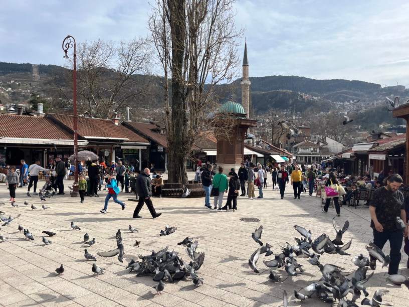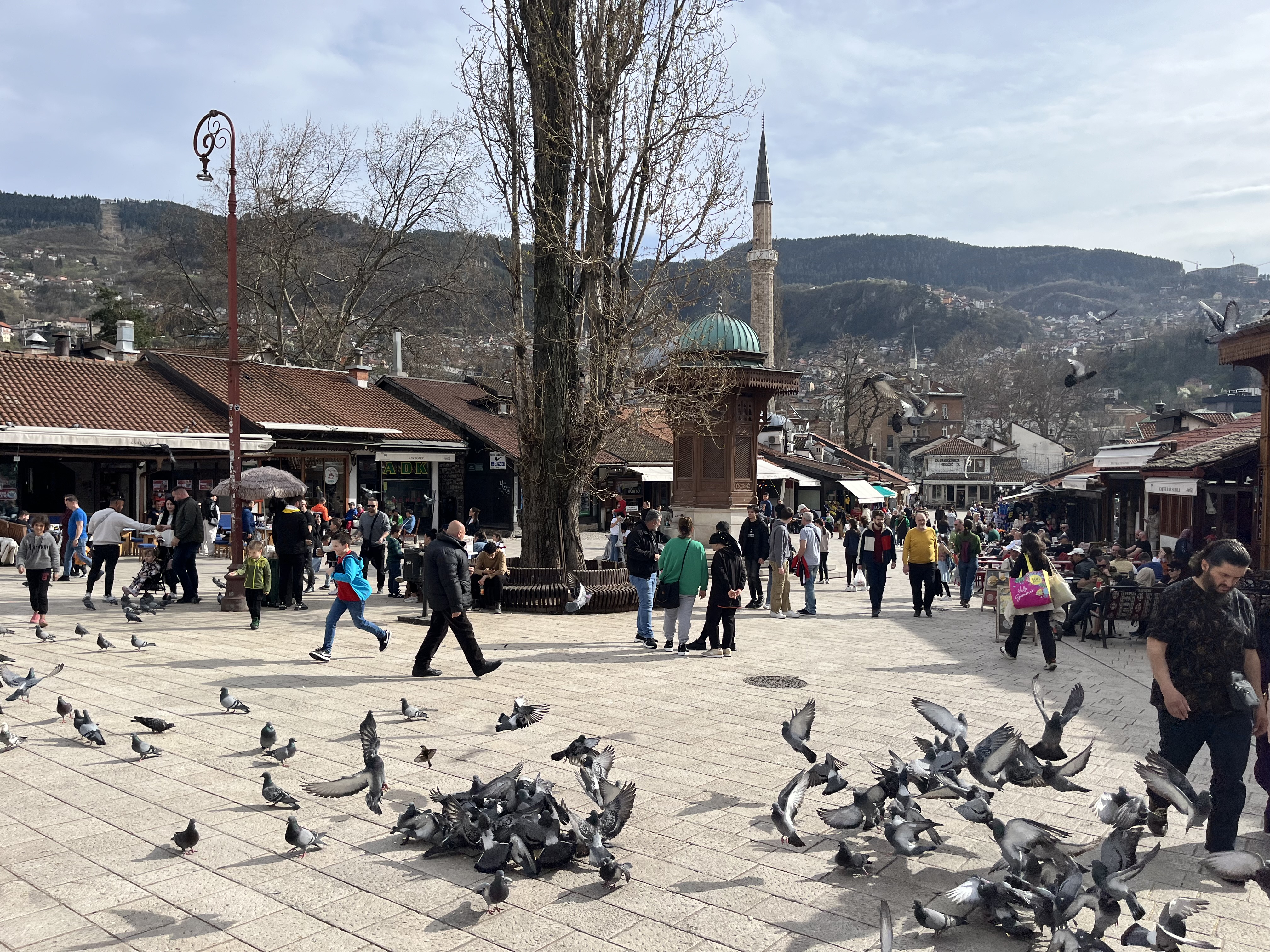 Am pornit plimbarea prin Sarajevo chiar din inima orașului, piața Bascarsija.