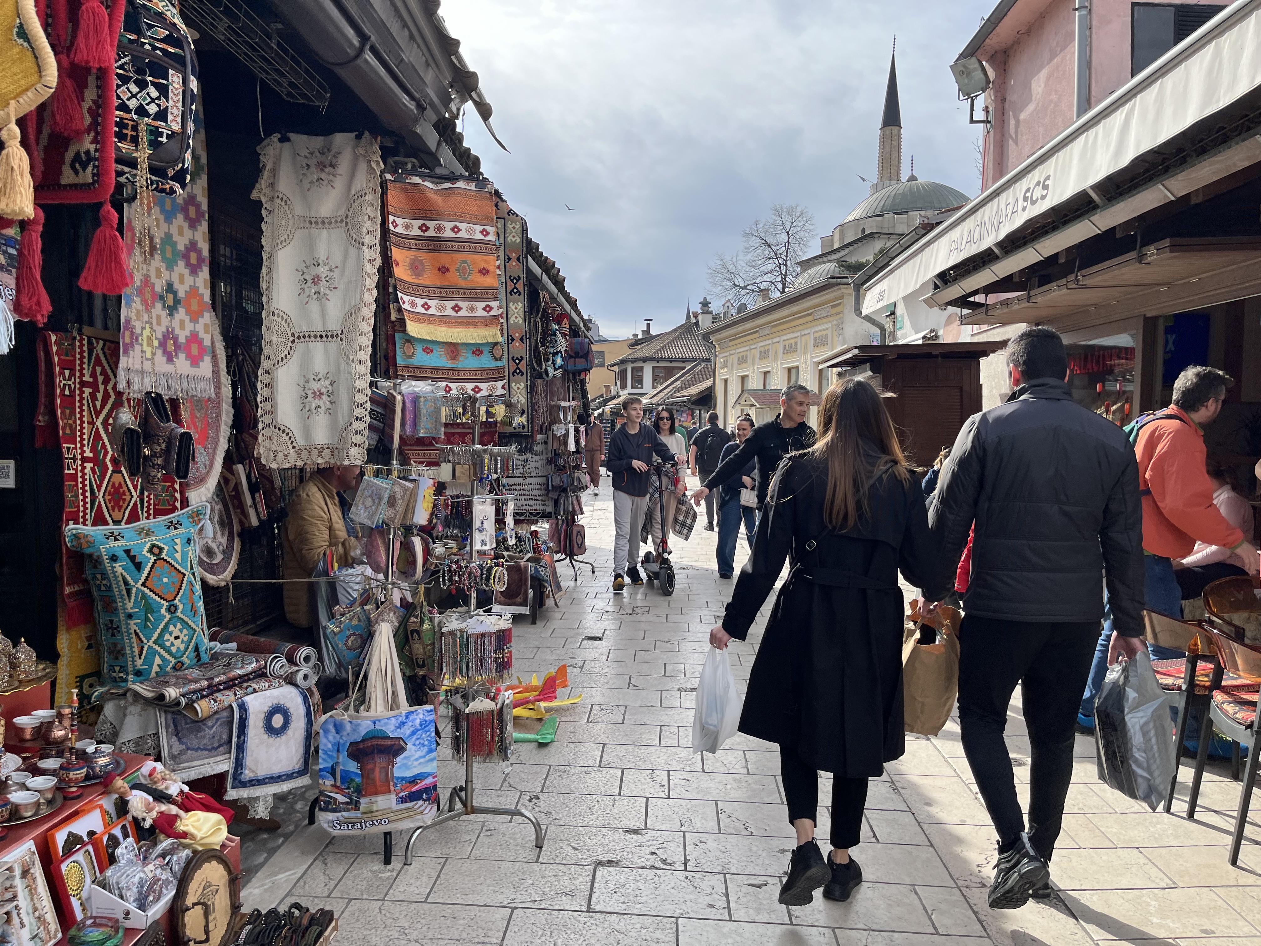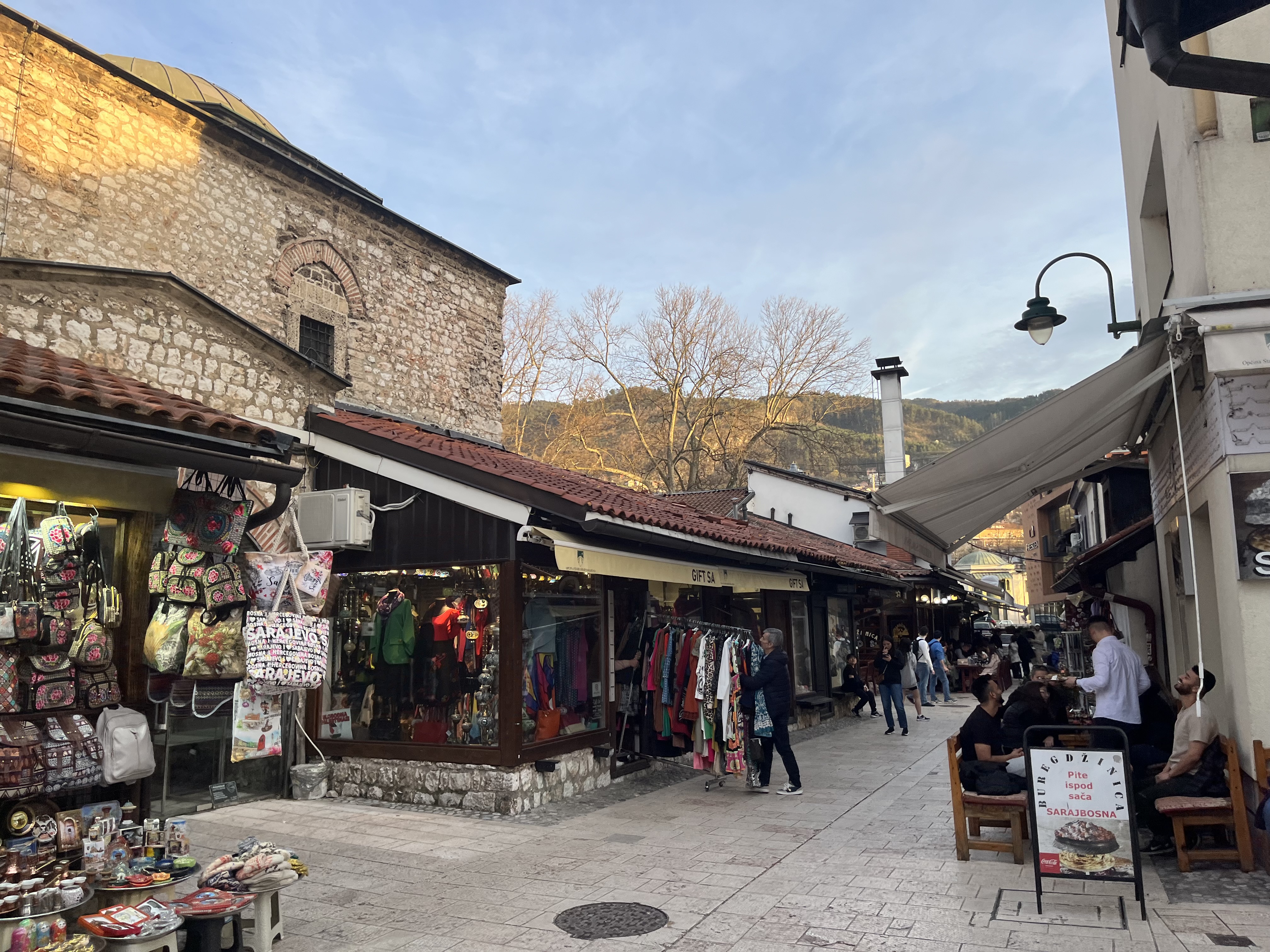 Străduțele din centrul istoric din Sarajevo mi-au amintit de bazarul din Istanbul. Totuși era o variantă mult mai relaxată a acestuia. Produsele din magazine sunt similare, dar lipsea vacarmul și forfota de acolo.