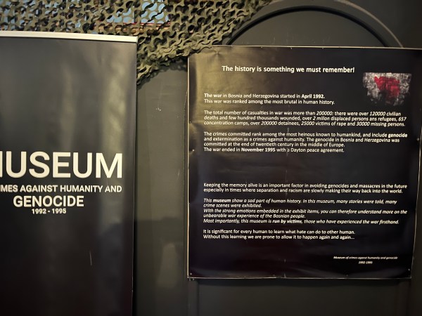 Cel mai dificil de vizitat pentru mine a fost War Childhood Museum (muzeul copilăriei în război). Acesta prezintă o colecție de obiecte și povestiri are copiilor care au trăit la Sarajevo pe timp de asediu.