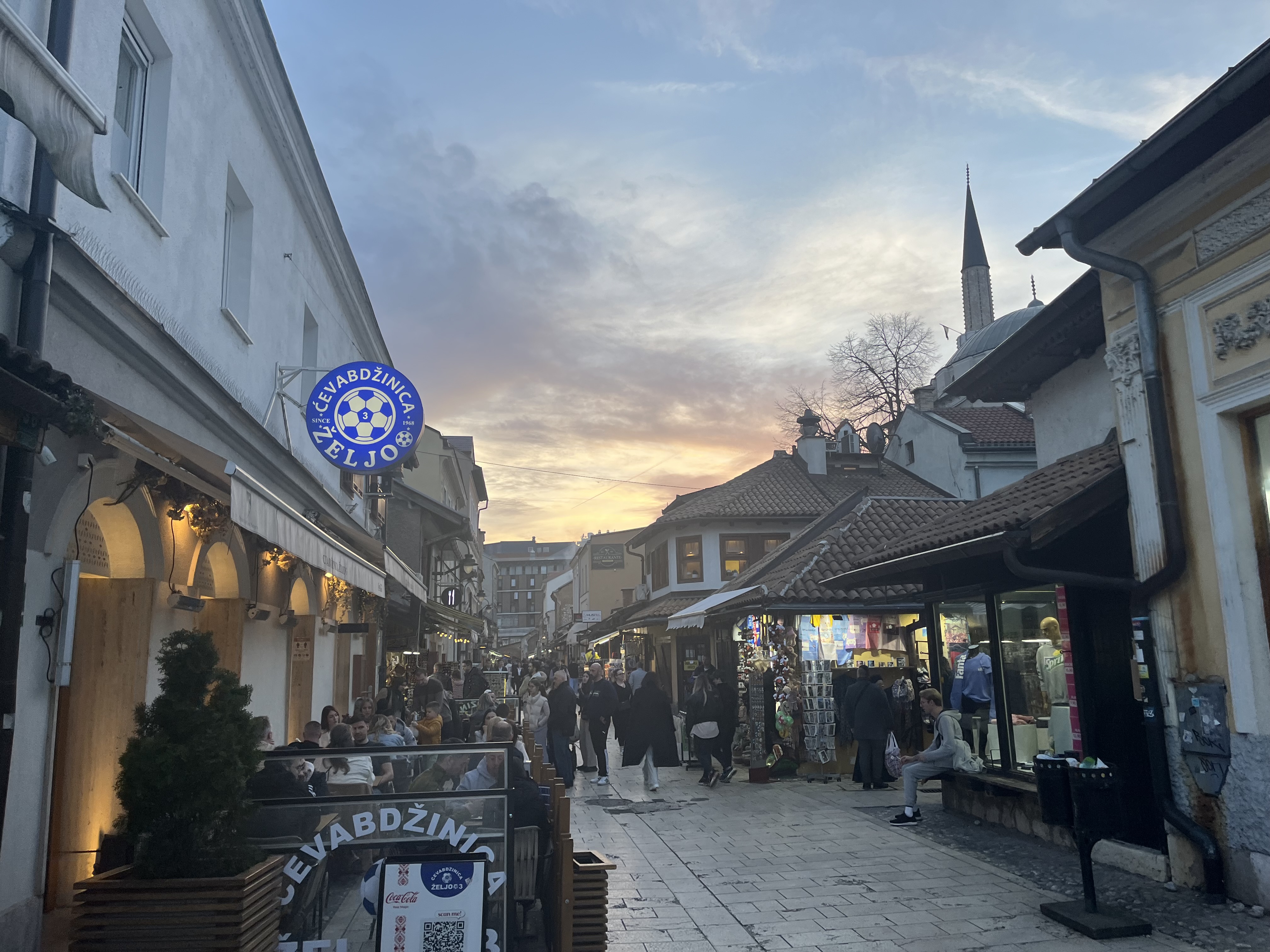 Am fost acolo într-un moment special – era Ramadan: perioada de post pentru musulmani dar și weekendul în care se sărbătoarea Paștele Catolic. Ora prânzului era un moment foarte interesant pentru a urmări oamenii în Bascarsija. Bătrânii bosniaci beau un ceai la umbră la terase, musulmanii credincioși mergeau la rugăciune la moschee în așteptarea asfințitului, turiștii degustau preparatele tradiționale la restaurante iar localnicii catolici se plimbau cu ouă vopsite în drum spre biserică.. Sarajevo mai este supranumit și Ierusalimul din nord, și pe bune dreptate, pentru că mi-a adus mult de aminte de acesta.