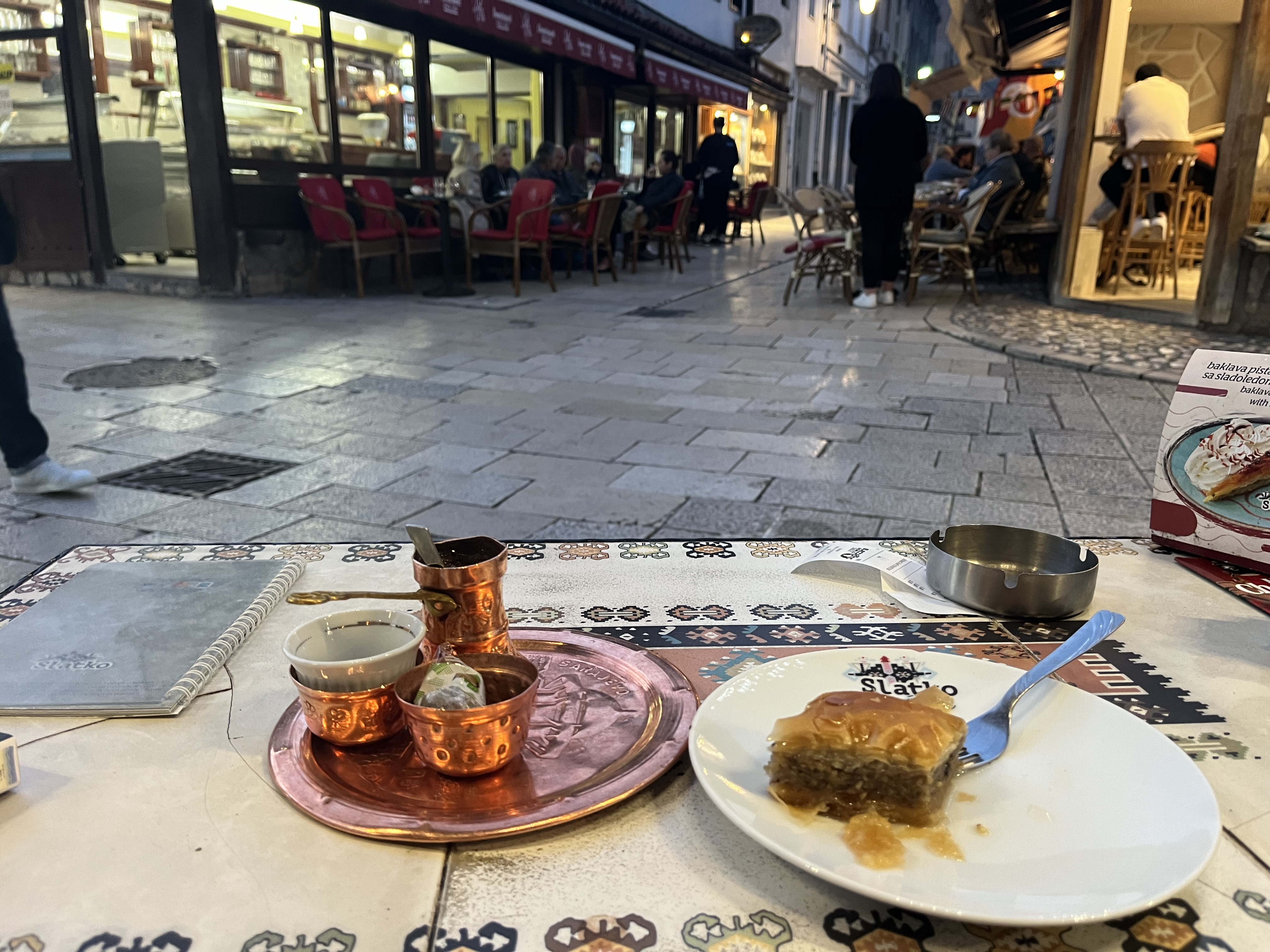 Desertul servit la o altă terasă – cafea „bosniacă” și baclava