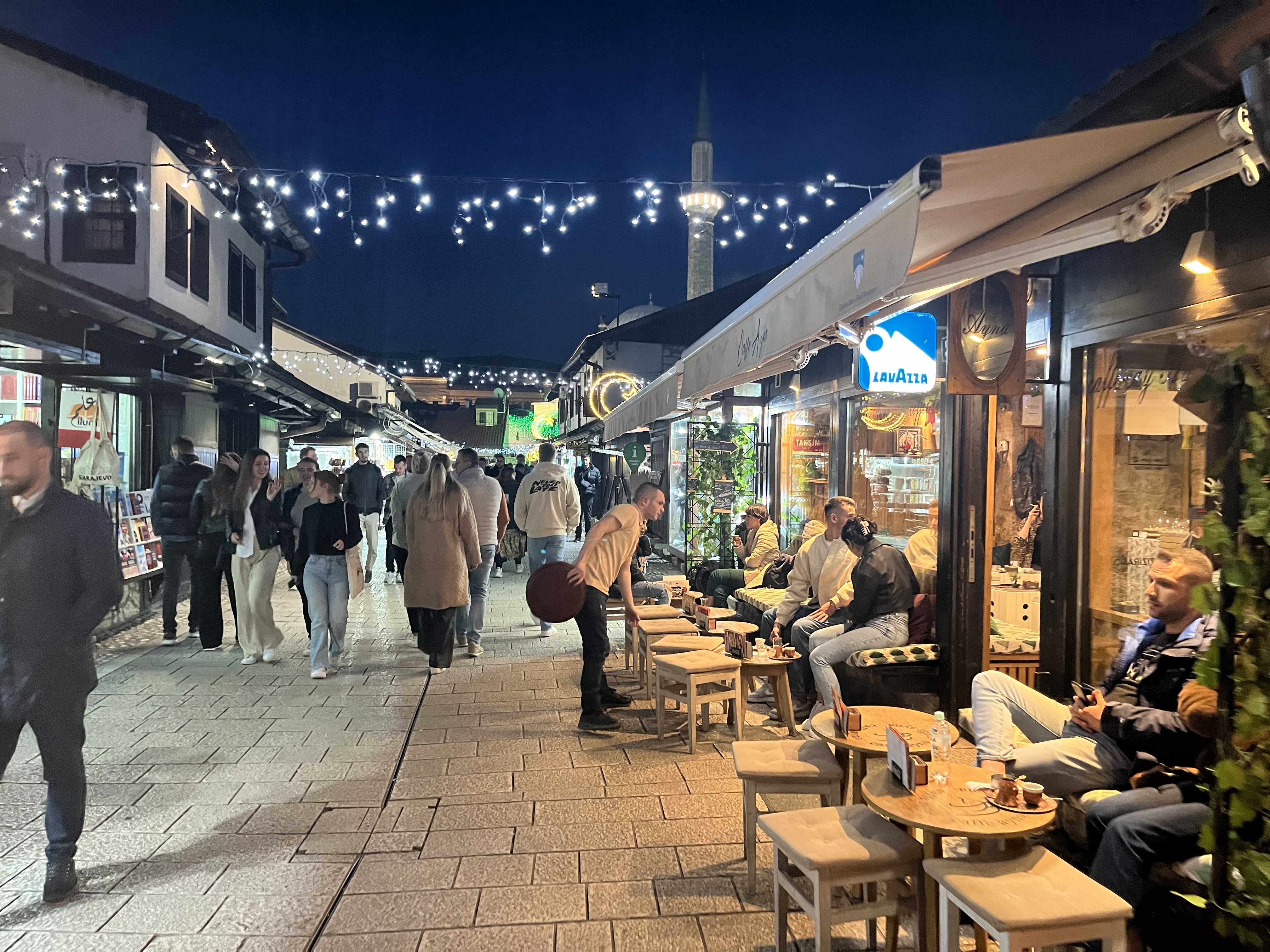 Noaptea cartierul Bascarsija e chiar mai animat decât ziua
