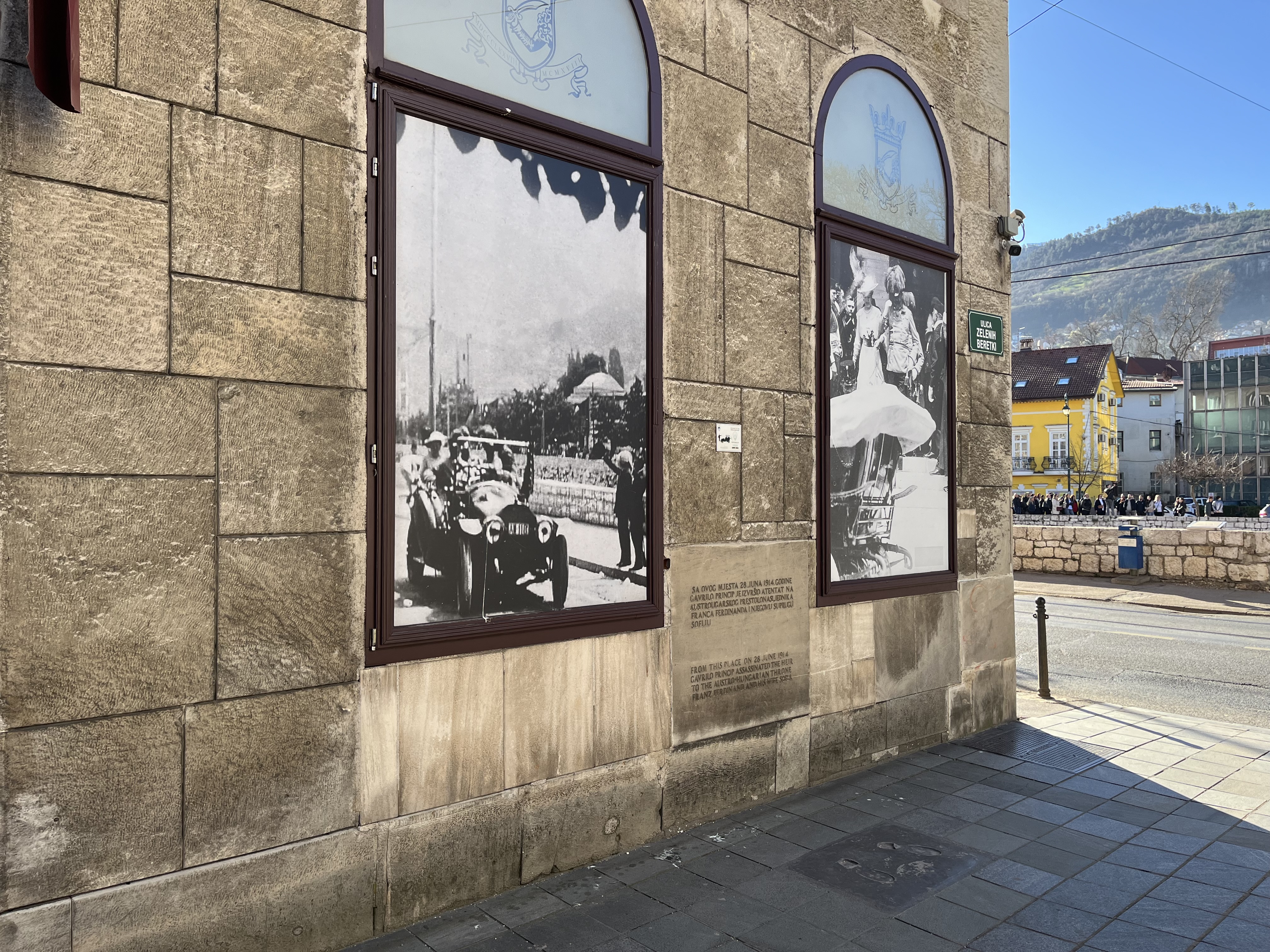 La capătul podului se află locul unde în Iunie 1914 a fost asasinat prințul moștenitor austro-ungar Franz Ferdinand. Asasinul a fost Gavrilo Princip, un tânăr bosniac sârb din gruparea Young Bosna, ce milita împotriva ocupației habsburgice. Inițial Princip a aruncat o bombă asupra coloanei de mașini regale, dar aceasta și-a ratat ținta. Nu a mai scăpat apoi a doua ocazie când l-a împuscat pe prinț și pe soția sa. Asasinatul a fost evenimentul care a provocat în cele din urmă extinderea conflictului într-un război mondial, pe fondul tensiunilor deja existente între marile puteri europene.