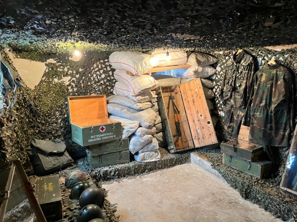 Reconstrucție a barăcilor militare subterane. Ghidul ne-a povestit despre zecile de zile pe care le-a petrecut aici.