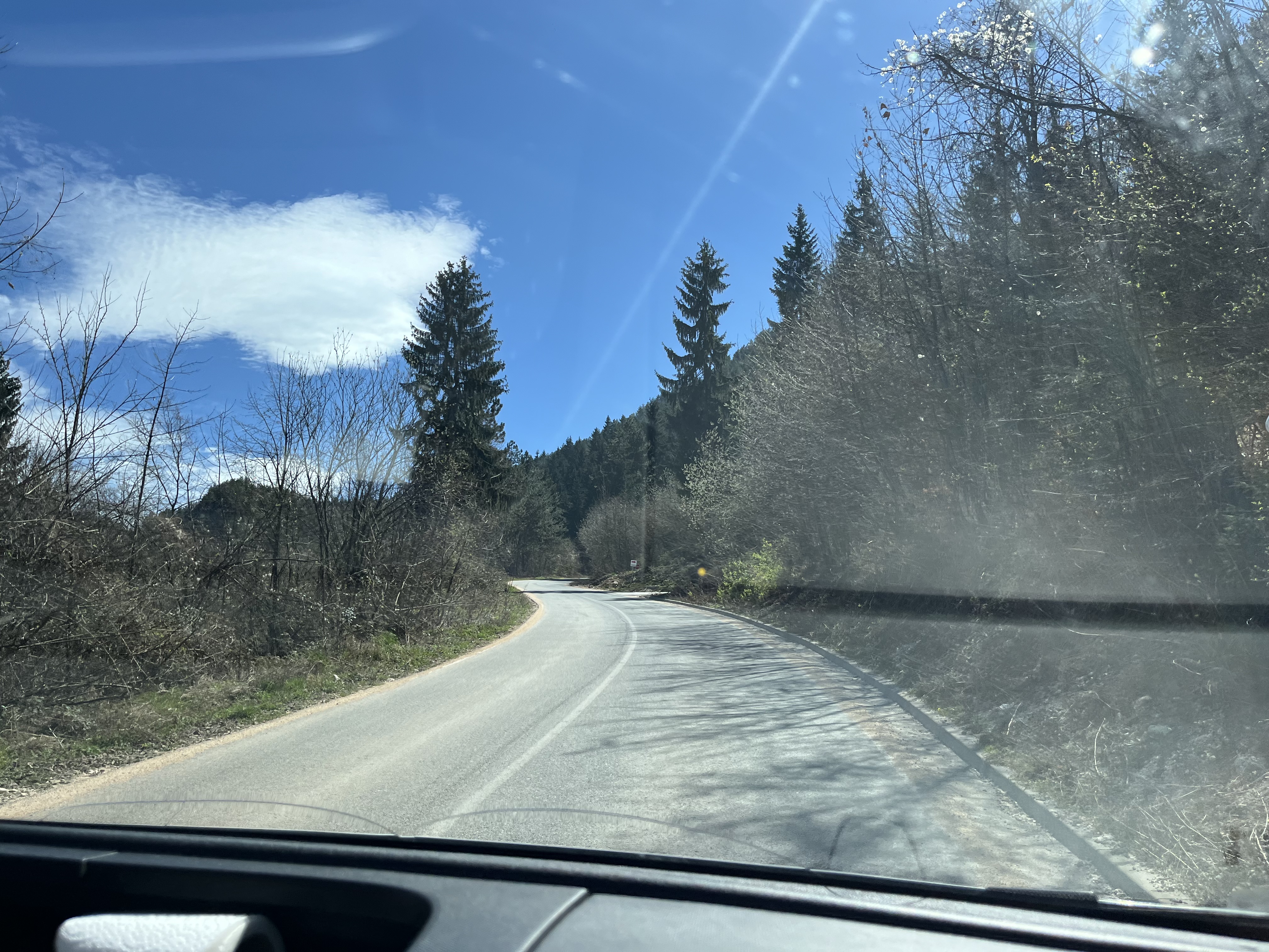 Am lăsat mașina și am pornit la pas prin pădure către pârtia de bob