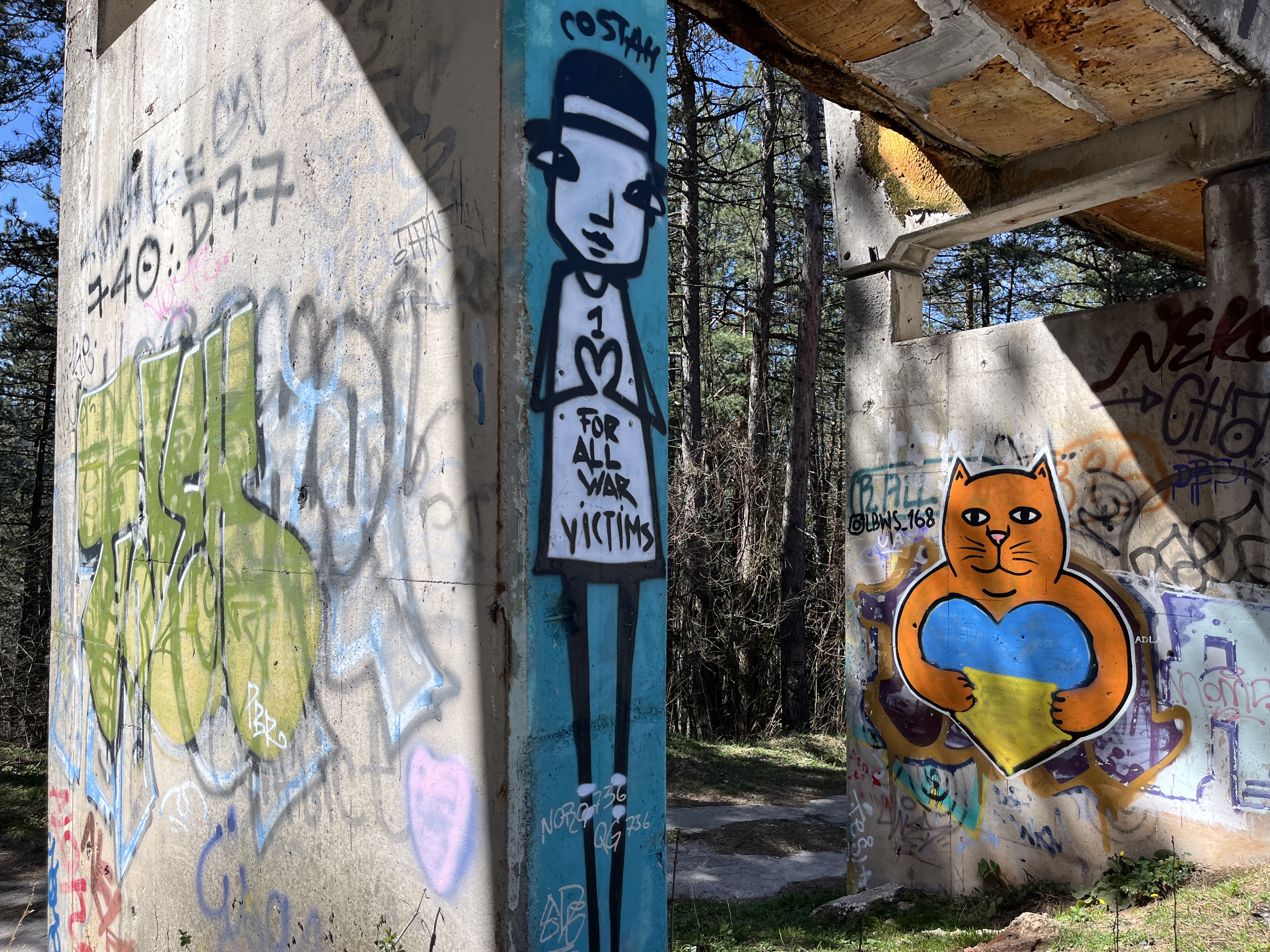 Toată zona este plină de graffiti, marea lor majoritate dedicate războaielor vechi și actuale
