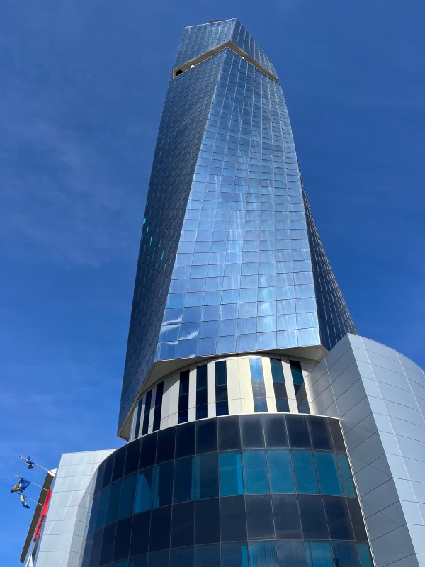 Aici se poate urca cu liftul până la ultimul etaj de unde se vede cea mai frumoasă panoramă peste tot orașul