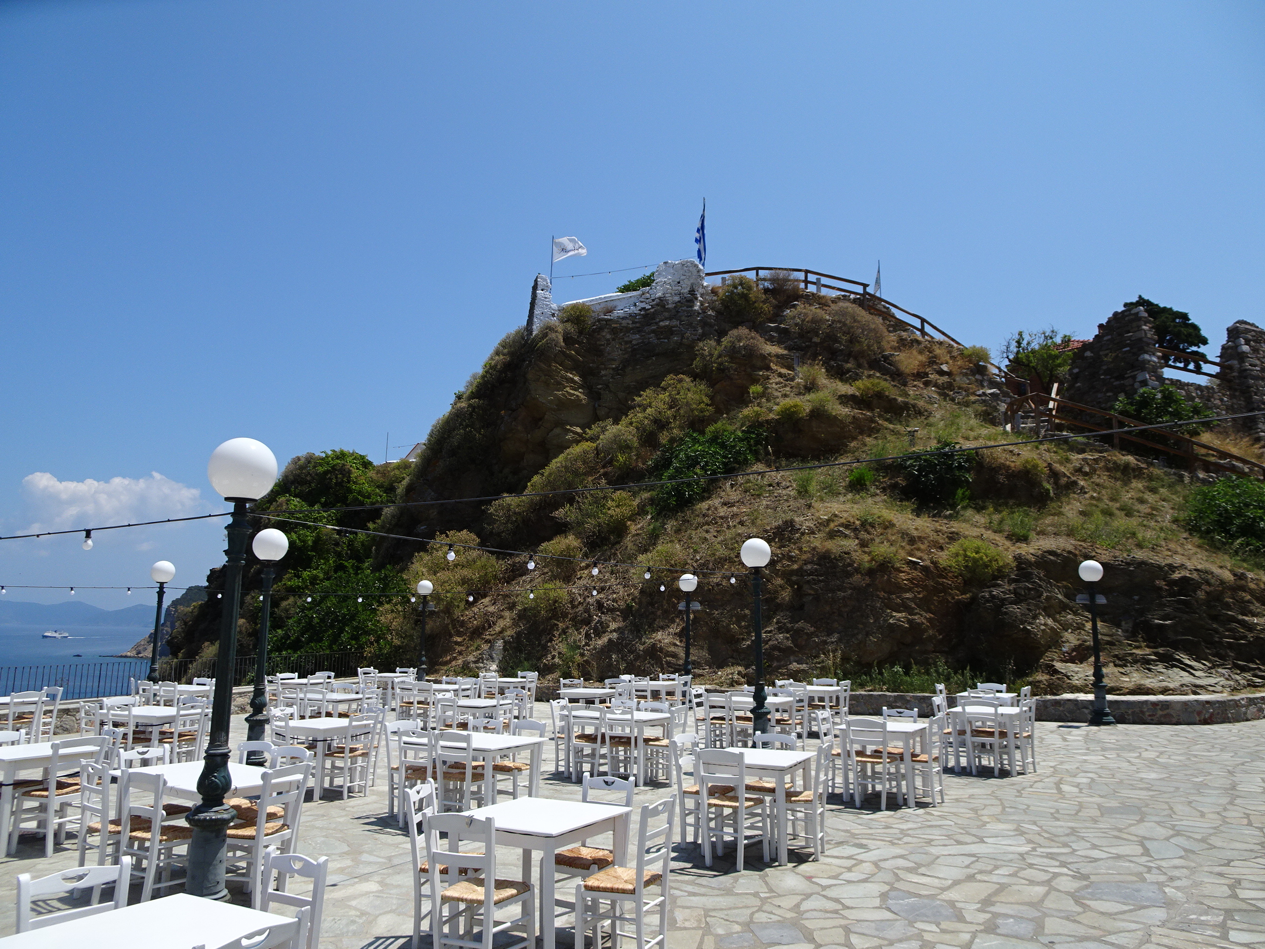 Un loc care mi-a mai plăcut în Skiathos Town este peninsula Bourtzi aflată la 2 pași de centru unde se află un parc și un restaurant cochet. E unul din puținele locuri unde se te poți plimba la umbră prin oraș.