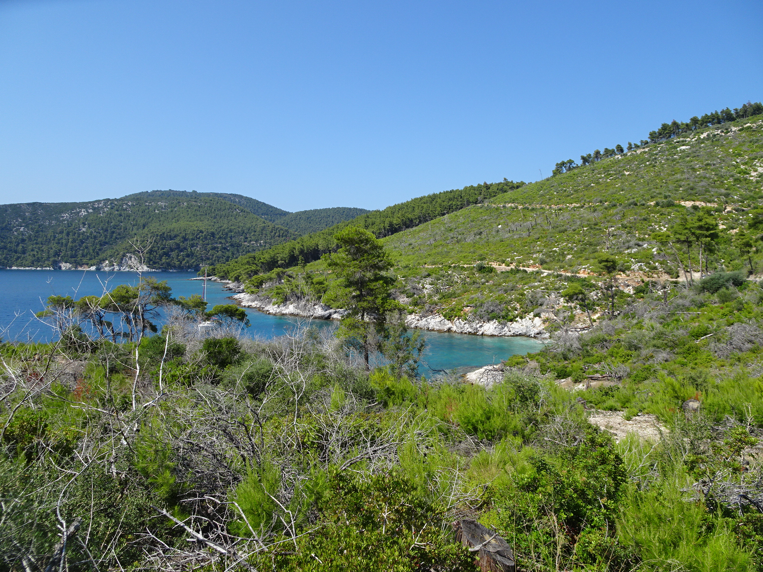 Comparativ cu Skiathos, drumurile pe insulă sunt mult mai lungi. De la un capăt la altul, se face vreo oră și jumătate cu mașina. Calitatea șoselelor este însă bună. Un prim lucru pe care l-am observat aparte în Skopelos este cât de verde este insula, mult mai mult decât orice altă insulă grecească pe unde am mai ajuns.