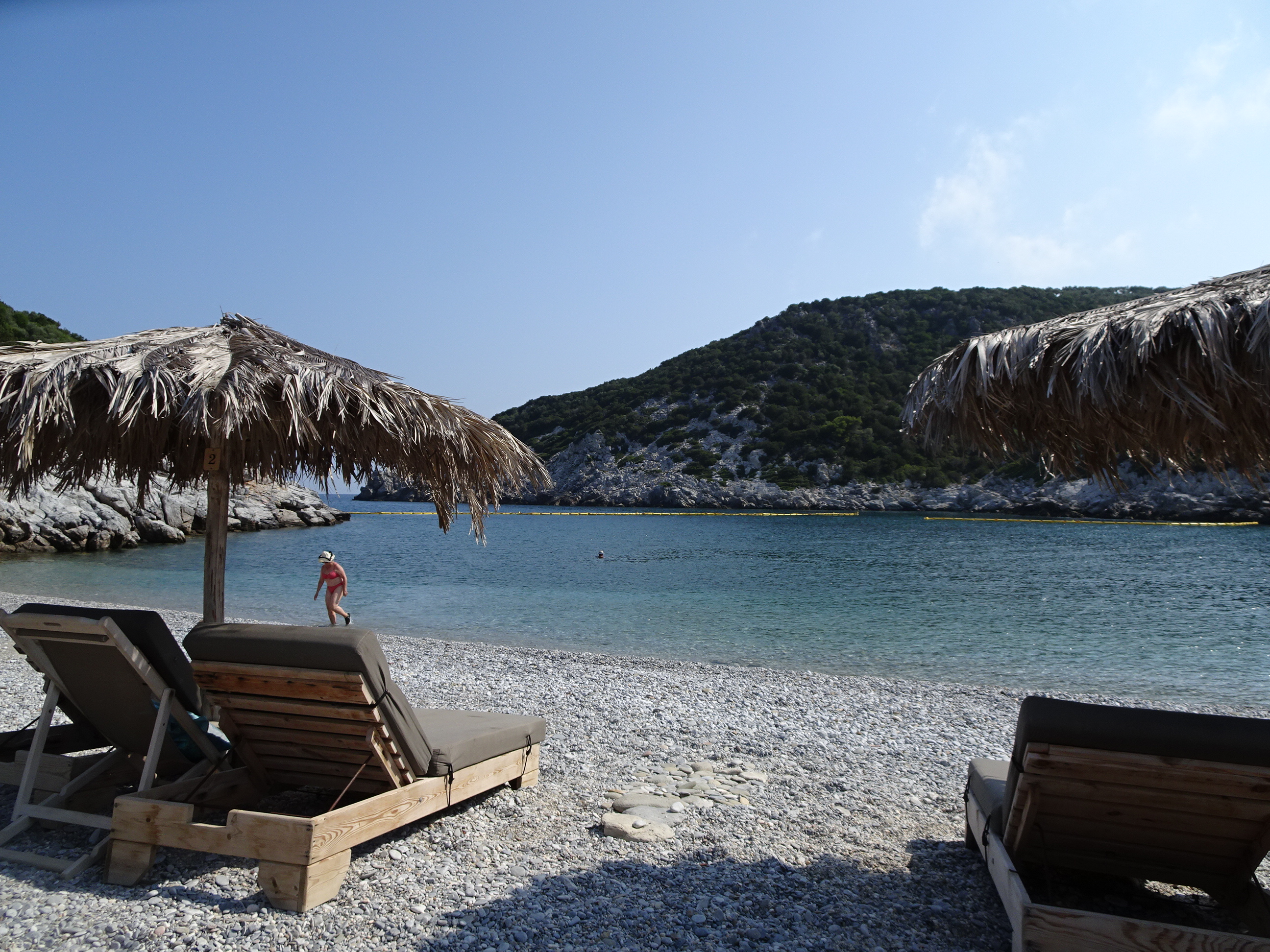 Noi am poposit în schimb la altă plajă folosită în film. Kastani, mi s-a părut cea mai frumoasă plajă de pe insulă și aceasta fiind amenajată foarte elegant.