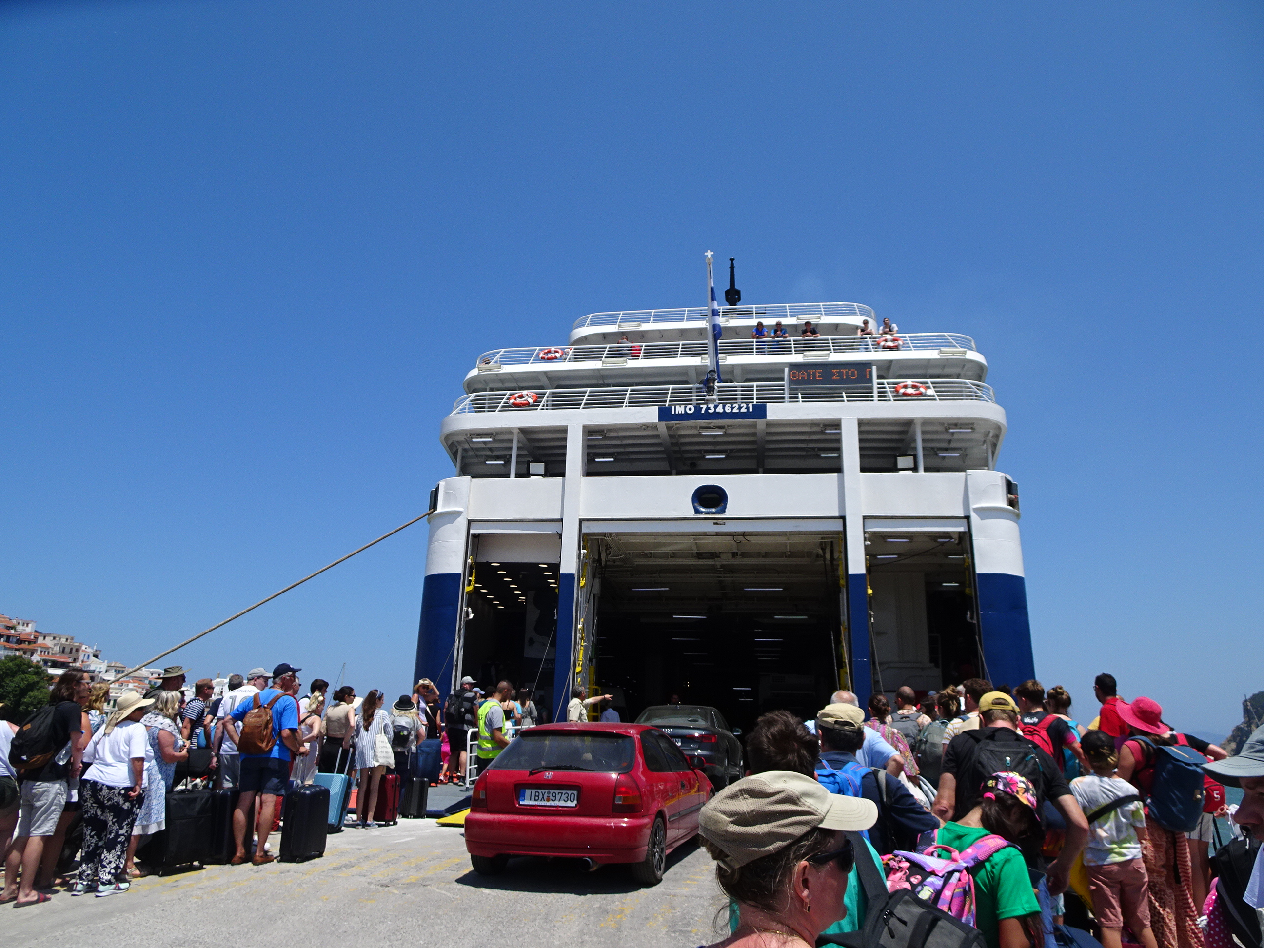 La îmbarcarea spre casă. Dintre cele două insule, de departe Skopelos ne-a plăcut mai mult, iar când voi mai avea ocazia să revin în Sporade, sper să ajung și pe Alonissos