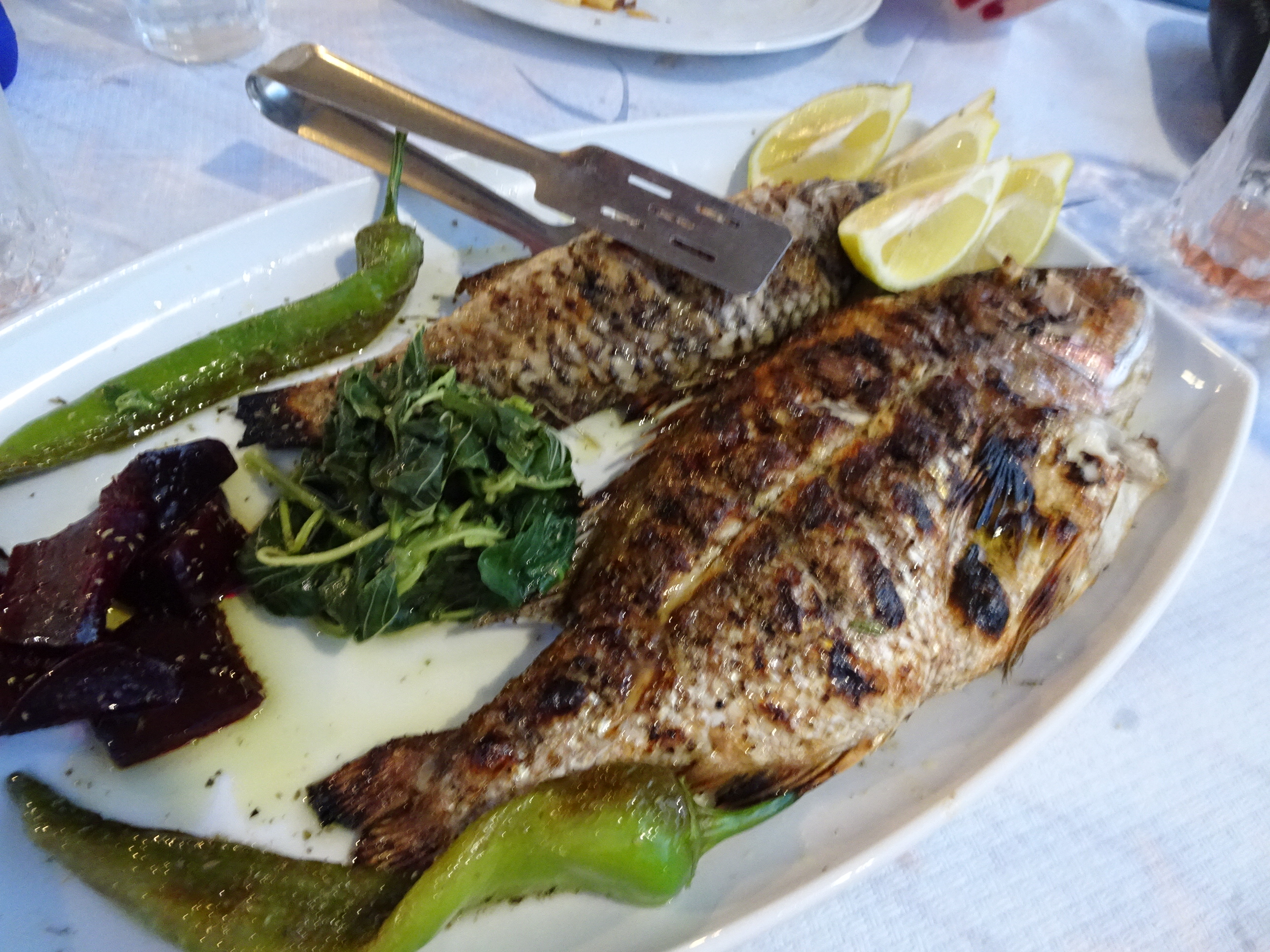 Acolo se află Taverna Manolis, cel mai renumit restaurant de pe insulă. Ne-am ales peștii proaspeți din vitrină și i-am primit apoi pregătiți la grătar. A fost o masă chiar excelentă