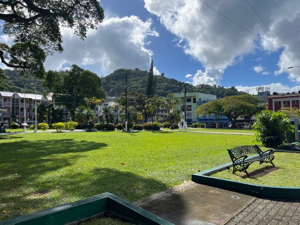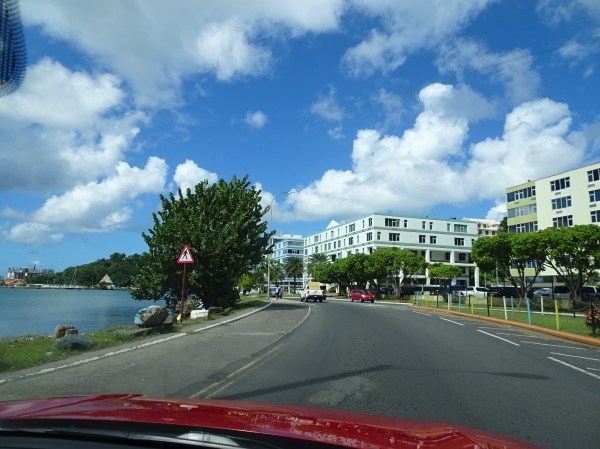 Cazarea noastră era la Soufriere la 40 de kilometri la sud de capitală. Nu am plecat imediat din oraș ci am mai poposit puțin pentru a schimba bani și a cumpăra câte ceva. Am parcat lângă piața Derek Welcott în centrul orașului.
