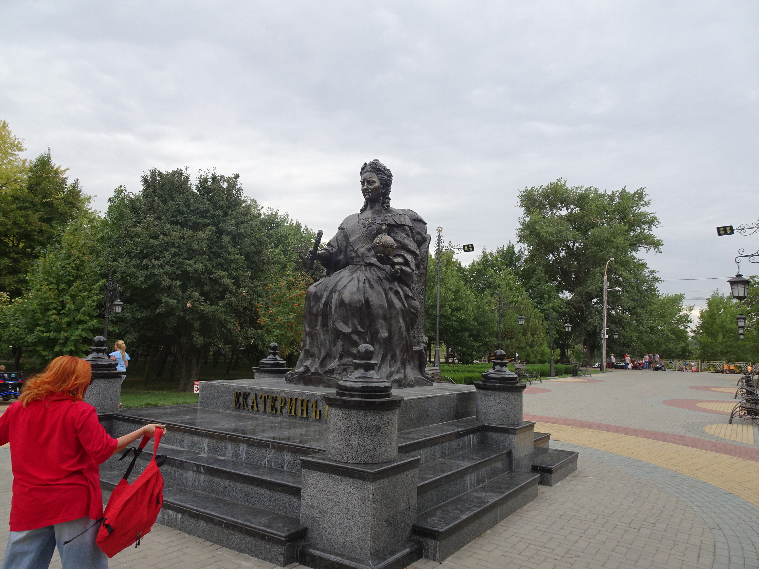 Statuia Ecaterinei cea mare, întemeietoarea orașului. Se spune că aceasta a înființat Tiraspol din dorința de a cantona trupe pentru a invada Țările Românești.