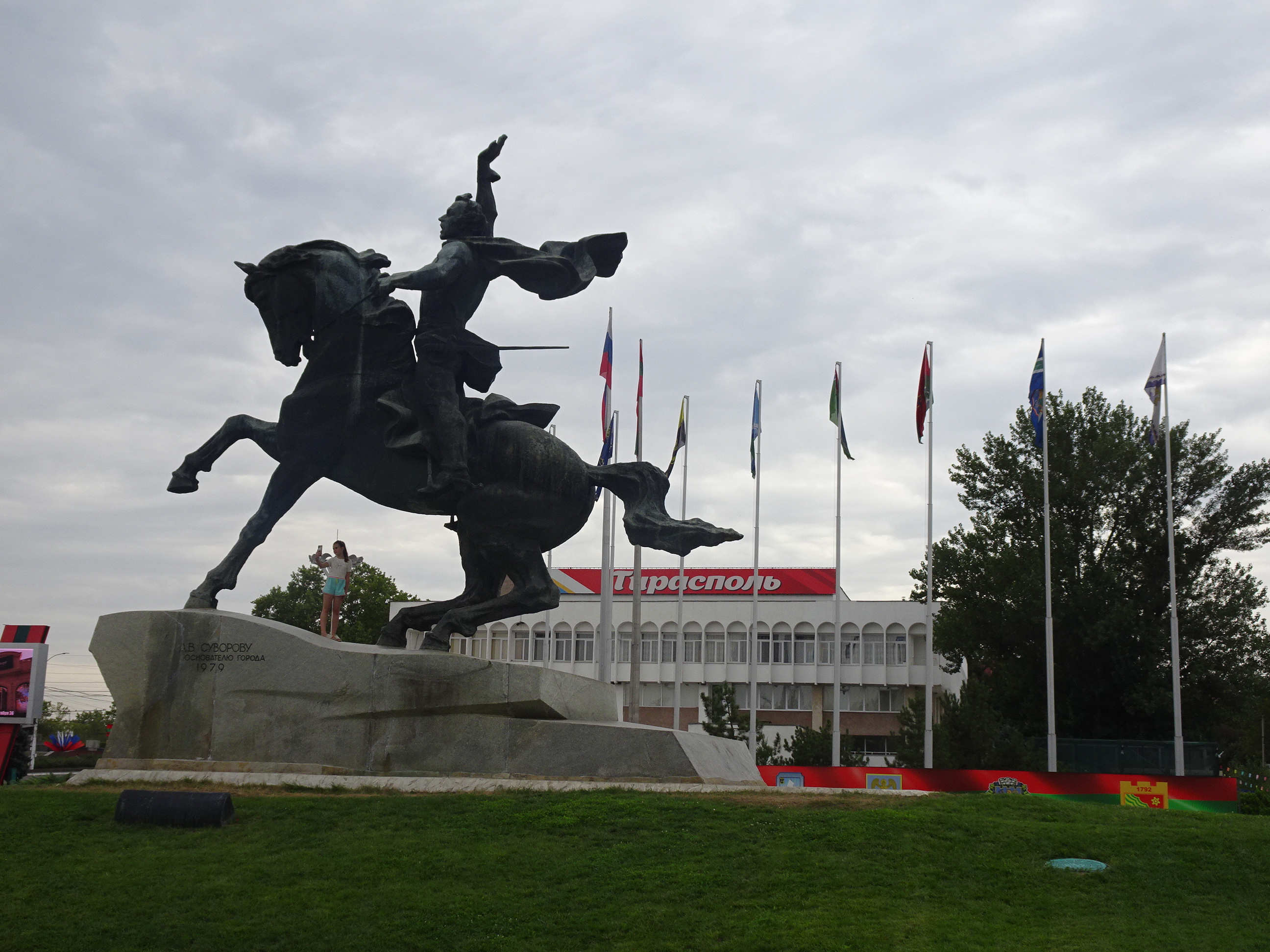 După vizita la cetatea Tighina am trecut Nistrul și am oprit la Tiraspol, în centrul orașului. Pe bulevardul principal am remarcat steagurile rusești înălțate peste tot alături de cele Transnistriene roșu-verde.