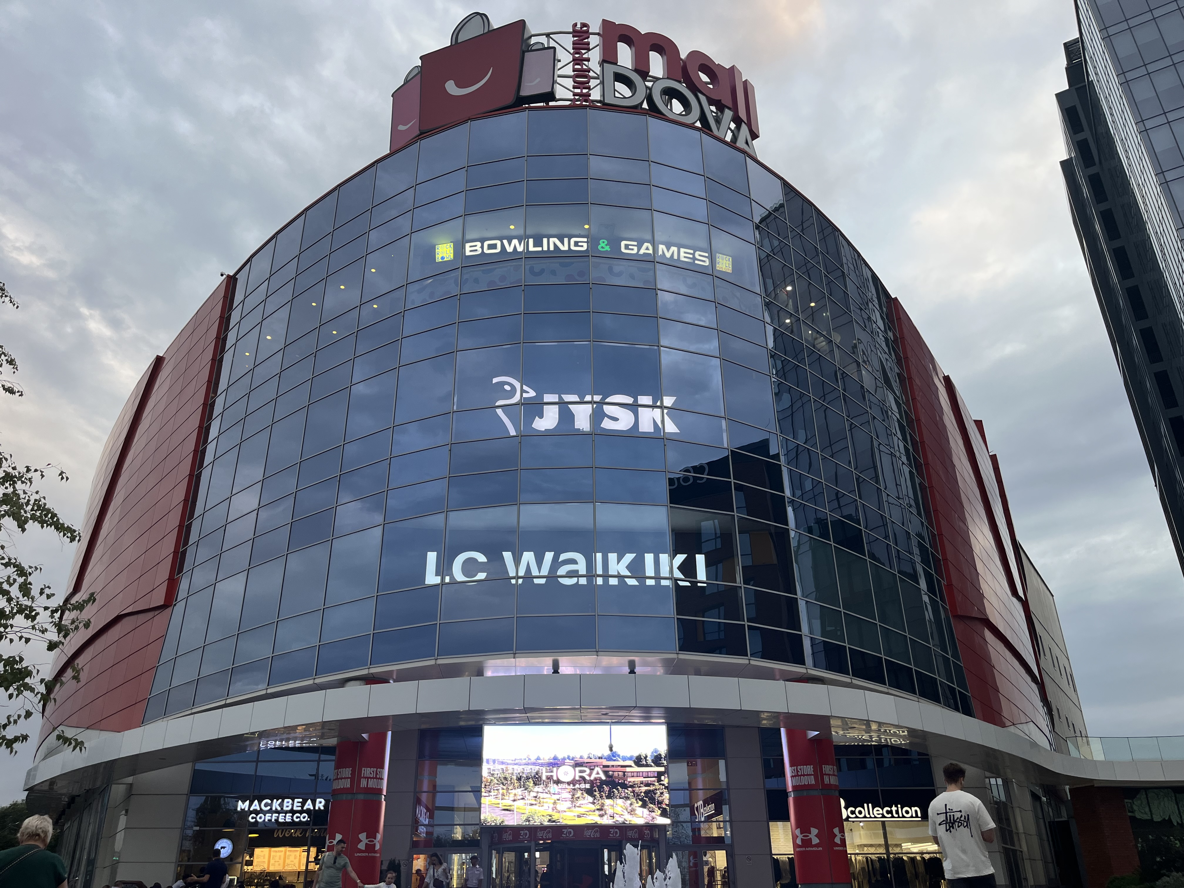 Seara am dat o tură pe la mall-ul din apropiere. Cel mai mare centru comercial din oraș se numește inspirat Mall Dova
