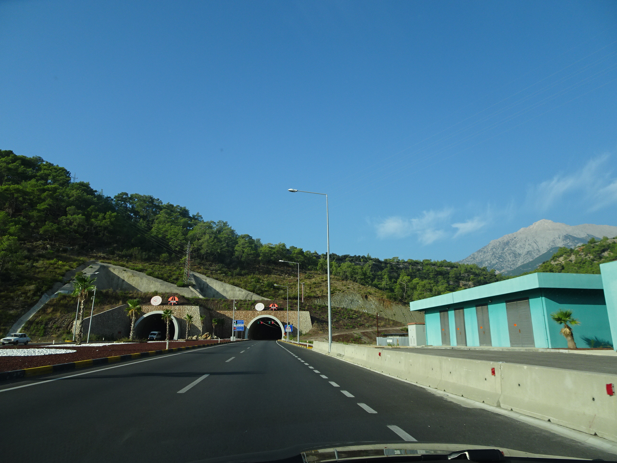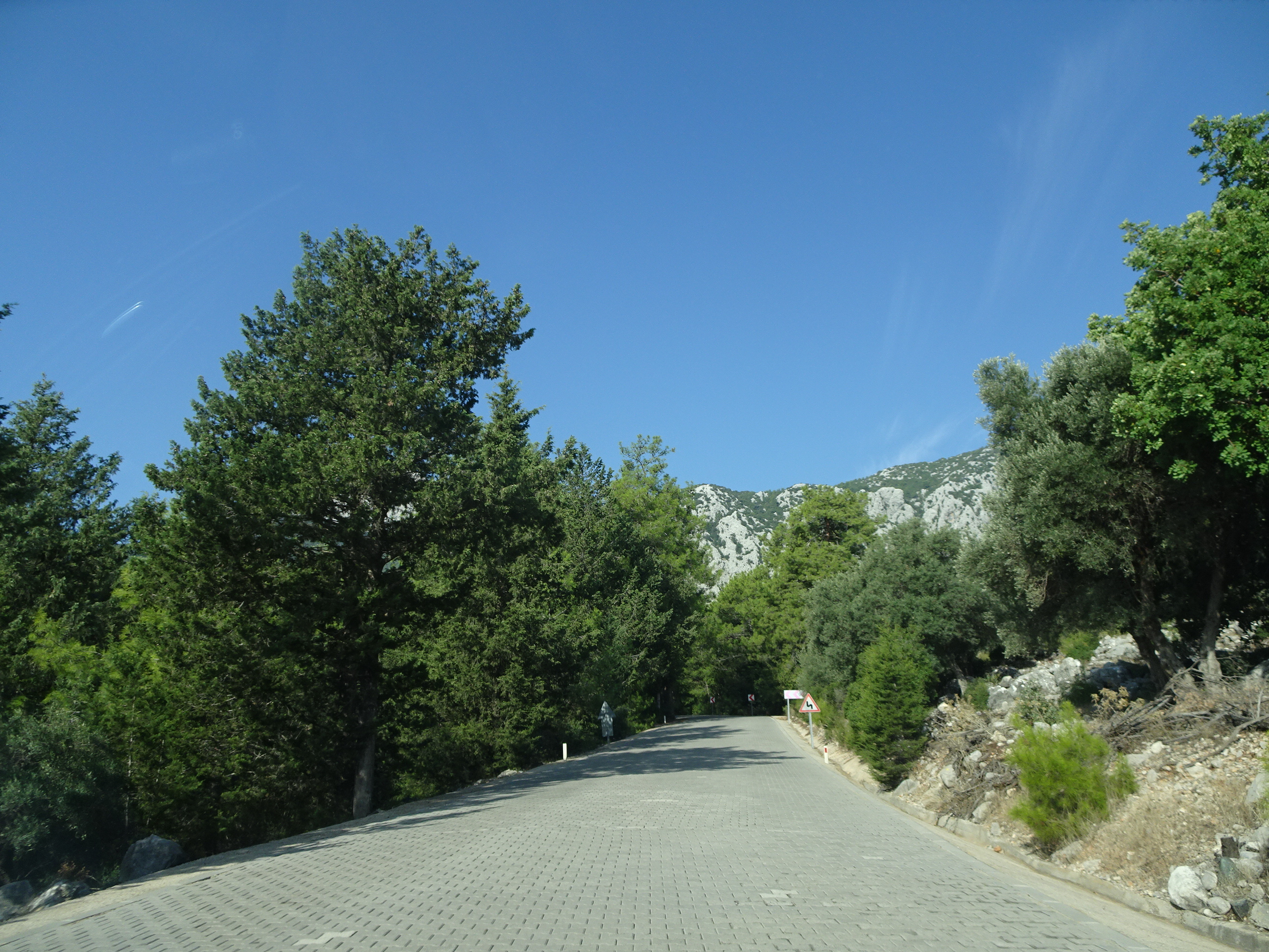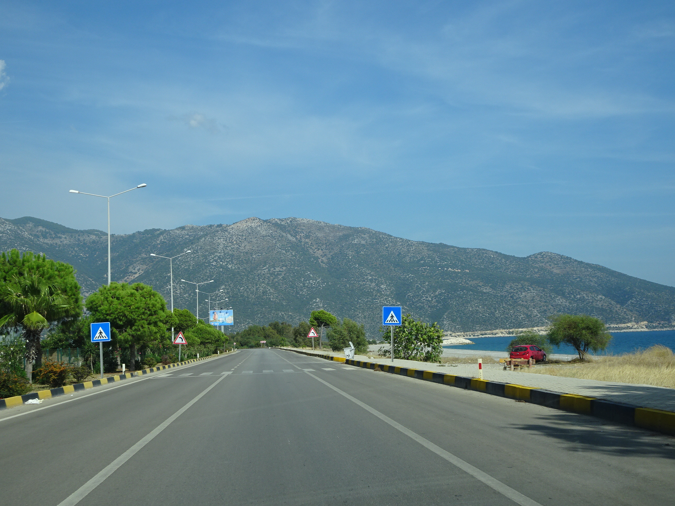 Am făcut și o excursie mai lungă, departe de Kemer. Mi-am dorit de mult timp să ajung la mormintele lyciene din Demre/Myra, unul din cele mai renumite monumente antice din Turcia. De la Camyuva la Demre sunt 90 de kilometri, iar drumul se face în vreo oră și 45 de minute. S-ar ajunge mai repede, pentru că șoselele sunt foarte bune, dar peste tot sunt limitări de viteză și radare. Am mers așadar încet, admirând peisajul de pe coastă.
