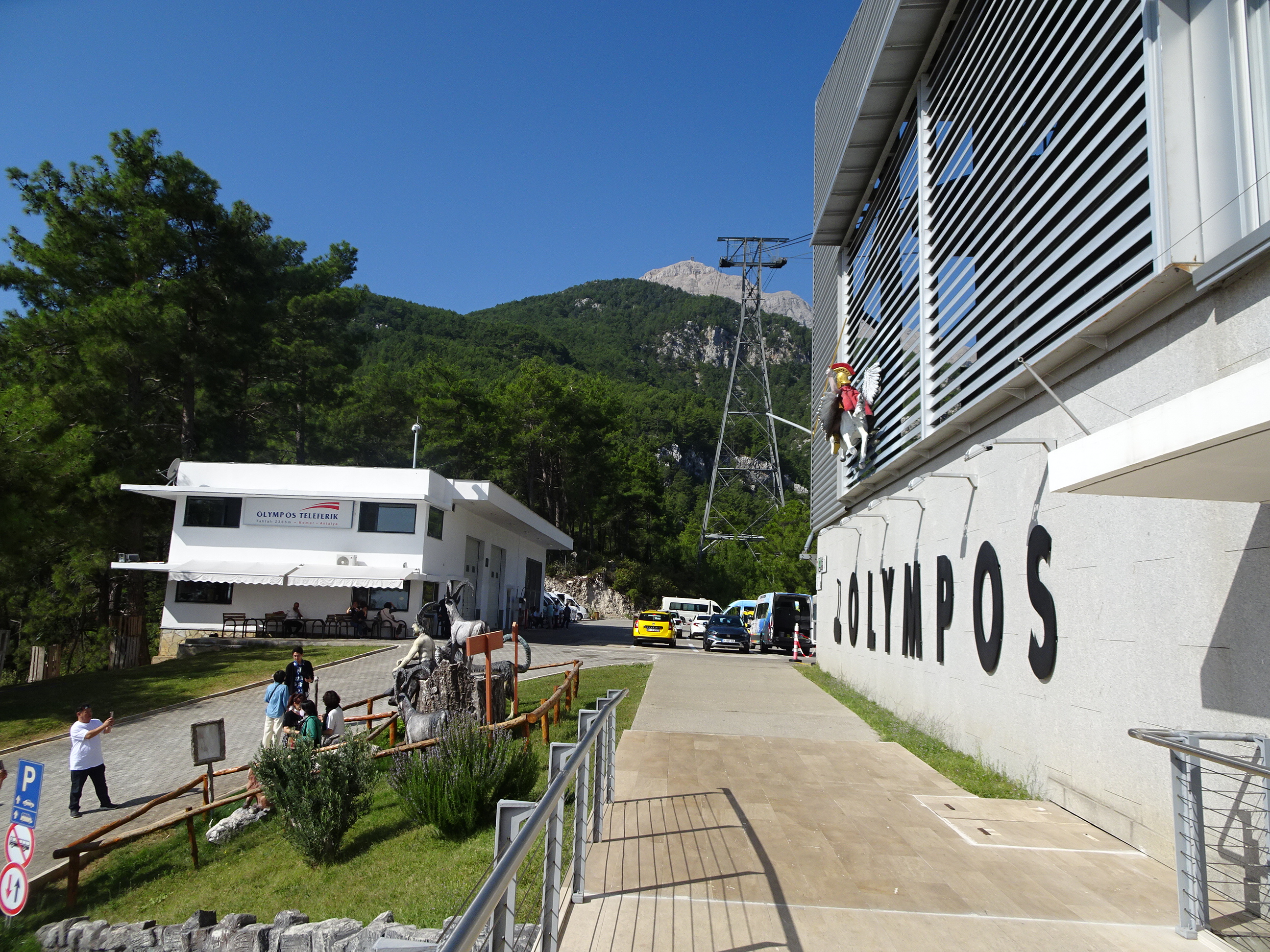 La capătul șoselei din parcul național Olympos se află telecabina ce duce spre vârf.