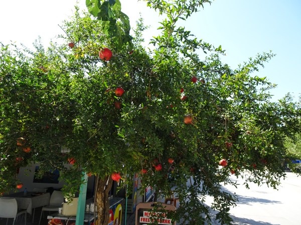 Am ajuns mai târziu la Demre unde erau 35 de grade. Înainte de a pleca în vizită, ne-am răcorit cu un suc de rodii proaspăt la umbră.