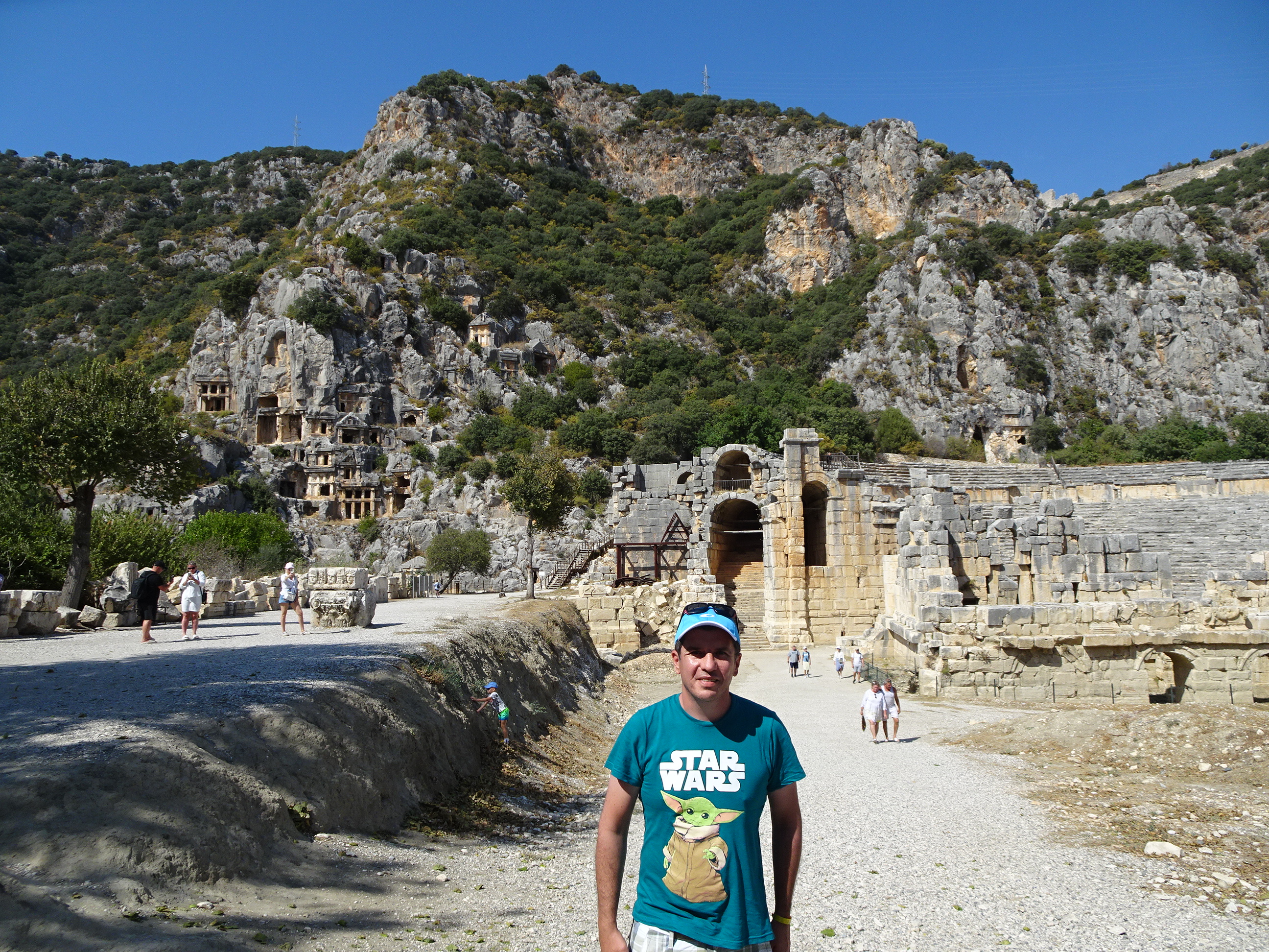 Am pornit apoi să vizităm ruinele orașului Myra, vechea capitală a lycienilor. Aceștia erau un popor aparte ce au dezvoltat o civilizație complexă acum peste două mii de ani, în sudul Anatoliei, cu o limbă și o religie unică. Myra (cunoscută azi ca Demre) era capitala lor, unul din cele mai dezvoltate orașe antice de la Mediterană. După decăderea poporului lycian, orașul a fost cucerit de romani, devenind mai târziu un important centru creștin, fiind locul unde era îngropat Sfântul Nicolae.