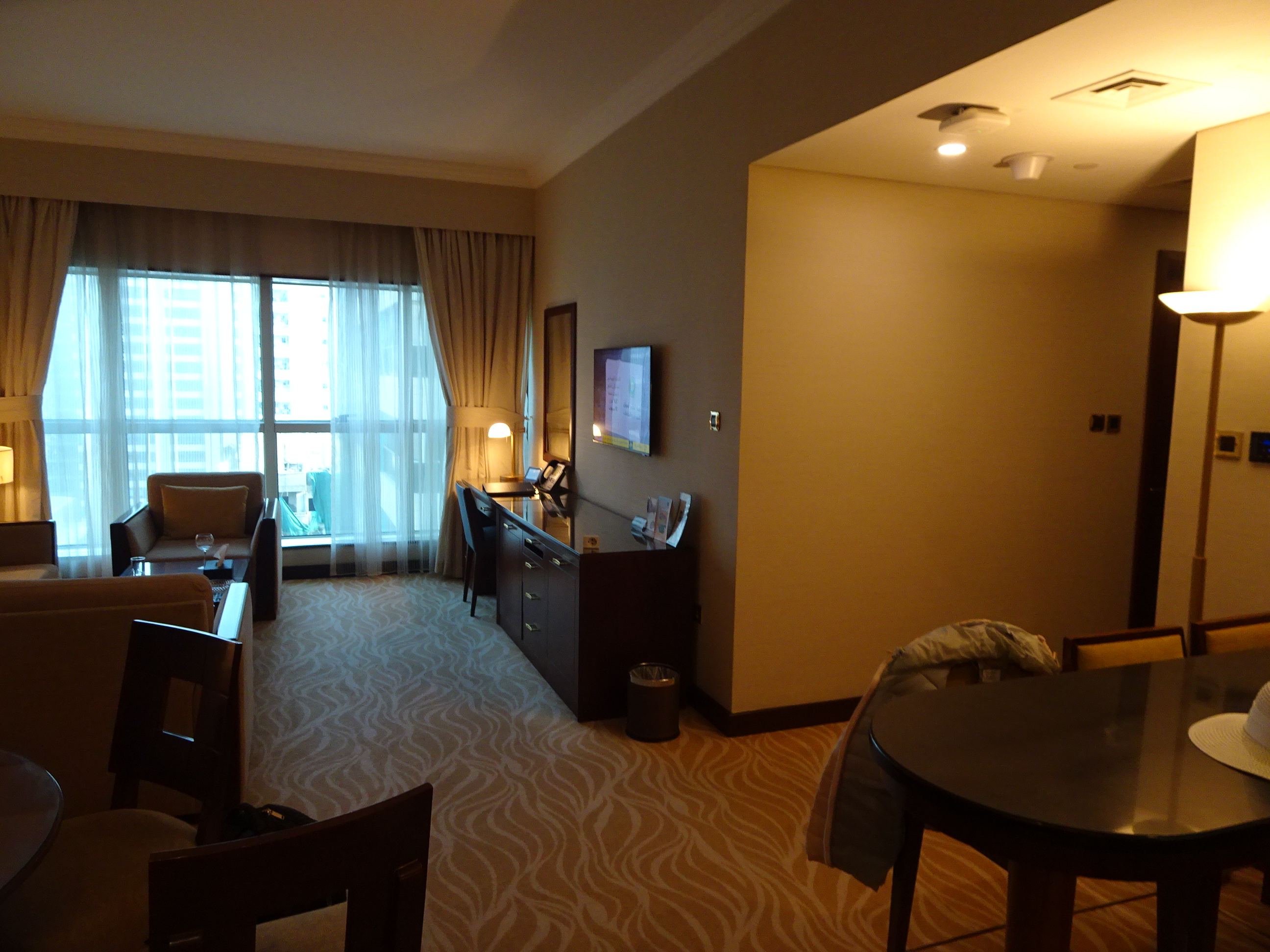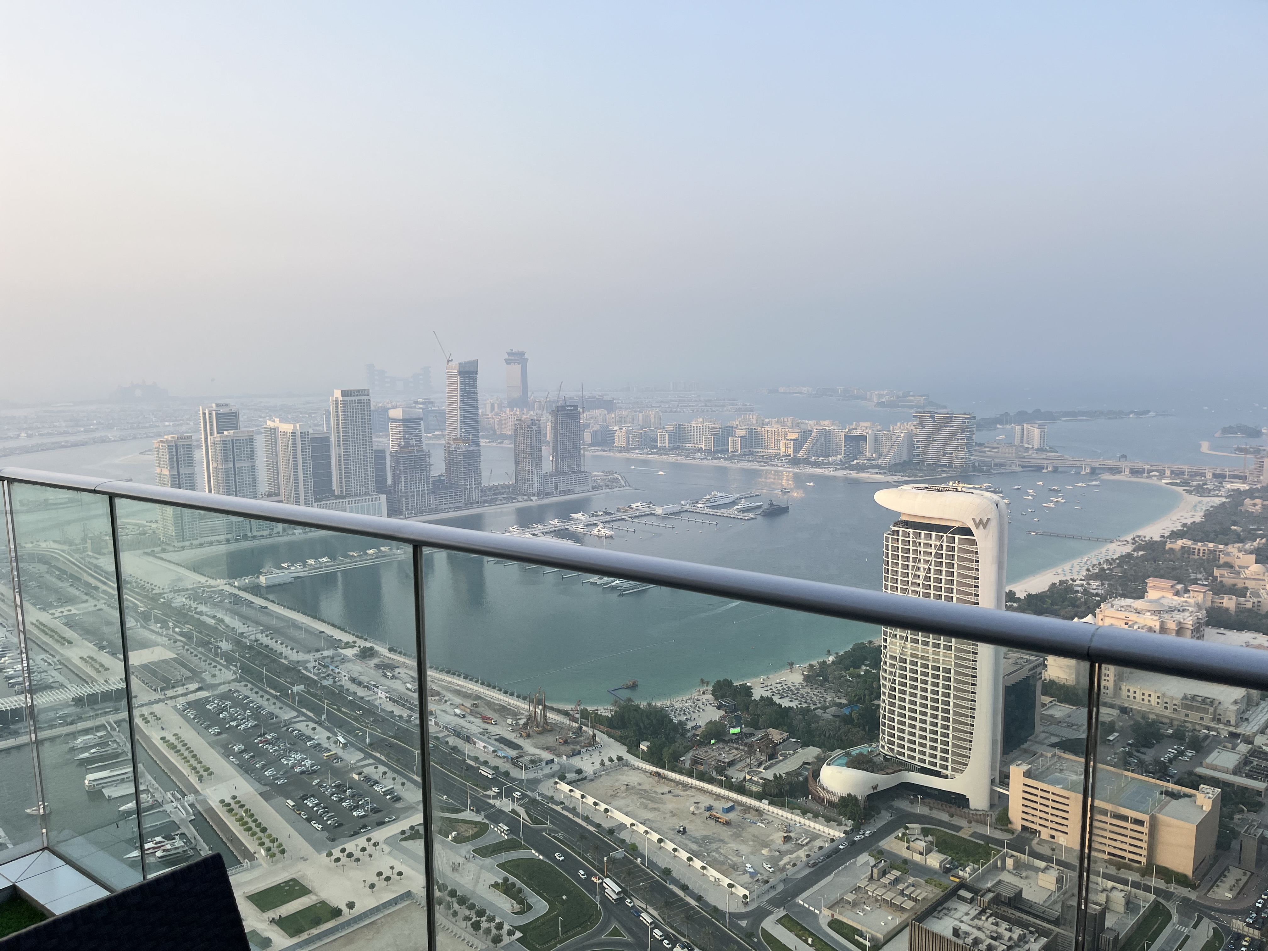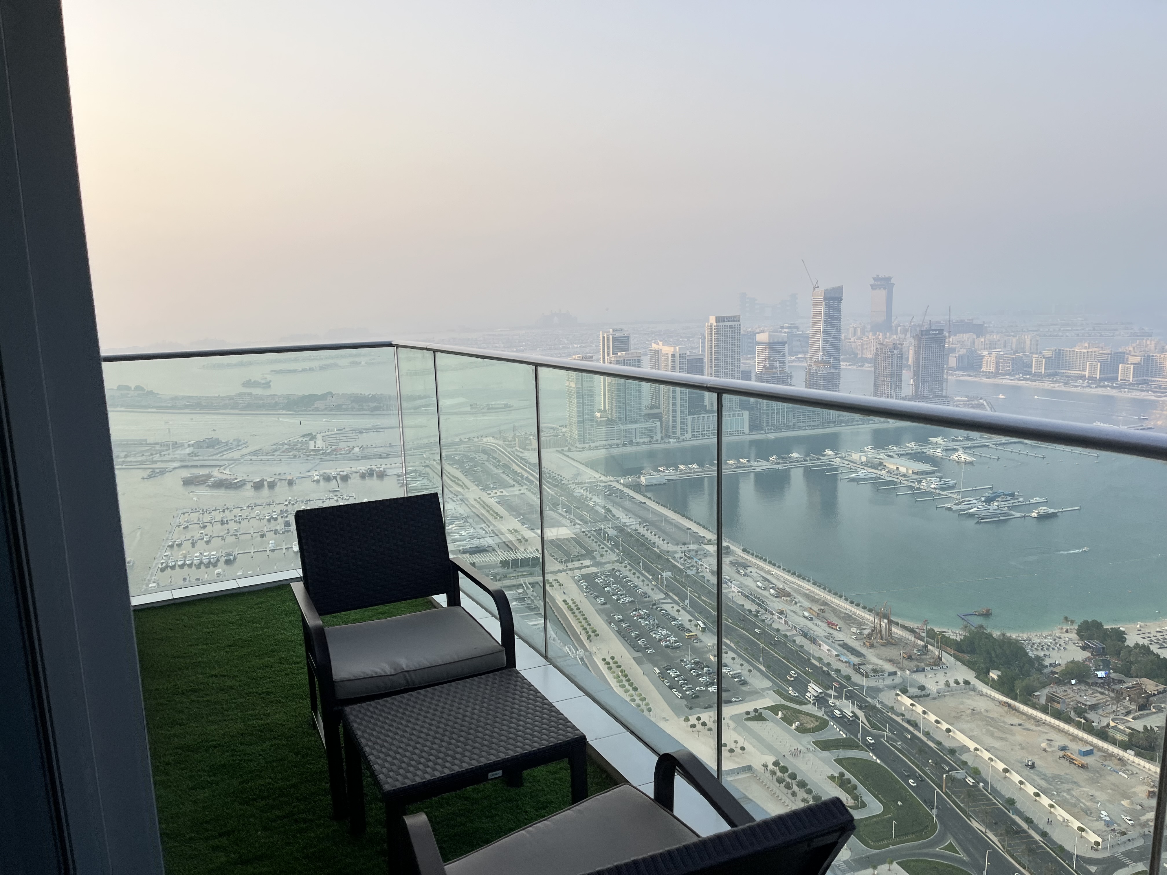 Cea mai tare chestie a fost că apartamentul nostru era la etajul 60 și avea un balcon cu o vedere absolut fabuloasă peste Palm și Marina. Era mult mai bine decât cel pe care îl rezervasem inițial, și bănuiesc că ar fi fost și mult mai scump dacă nu era întâmplarea asta. Apartamentul a fost grozav iar vederea de la balcon a făcut toți banii.