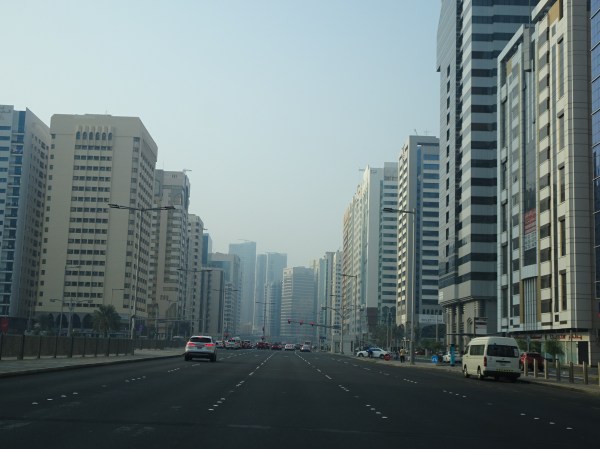Bulevardele largi din Abu Dhabi, destul de libere comparativ cu haosul din Dubai