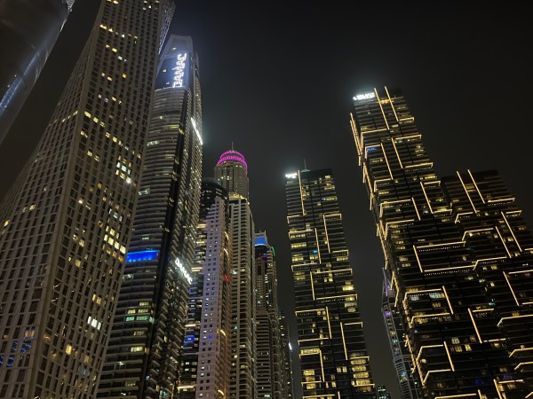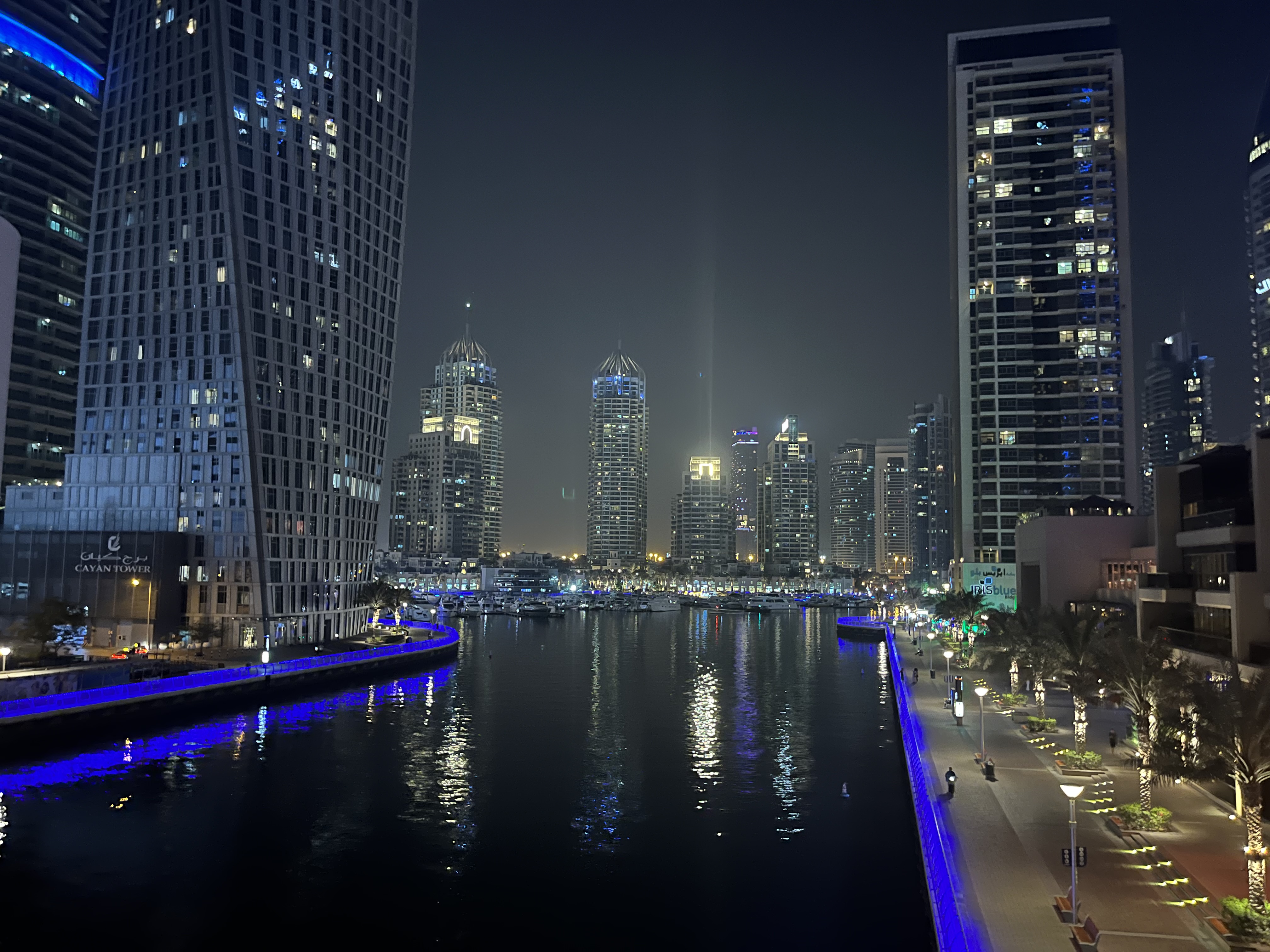 Dubai Marina arată frumos ziua, dar noaptea este absolut spectaculos. Zgârie-norii sunt toți luminați iar pe malul apei sunt construite promenade elegante.