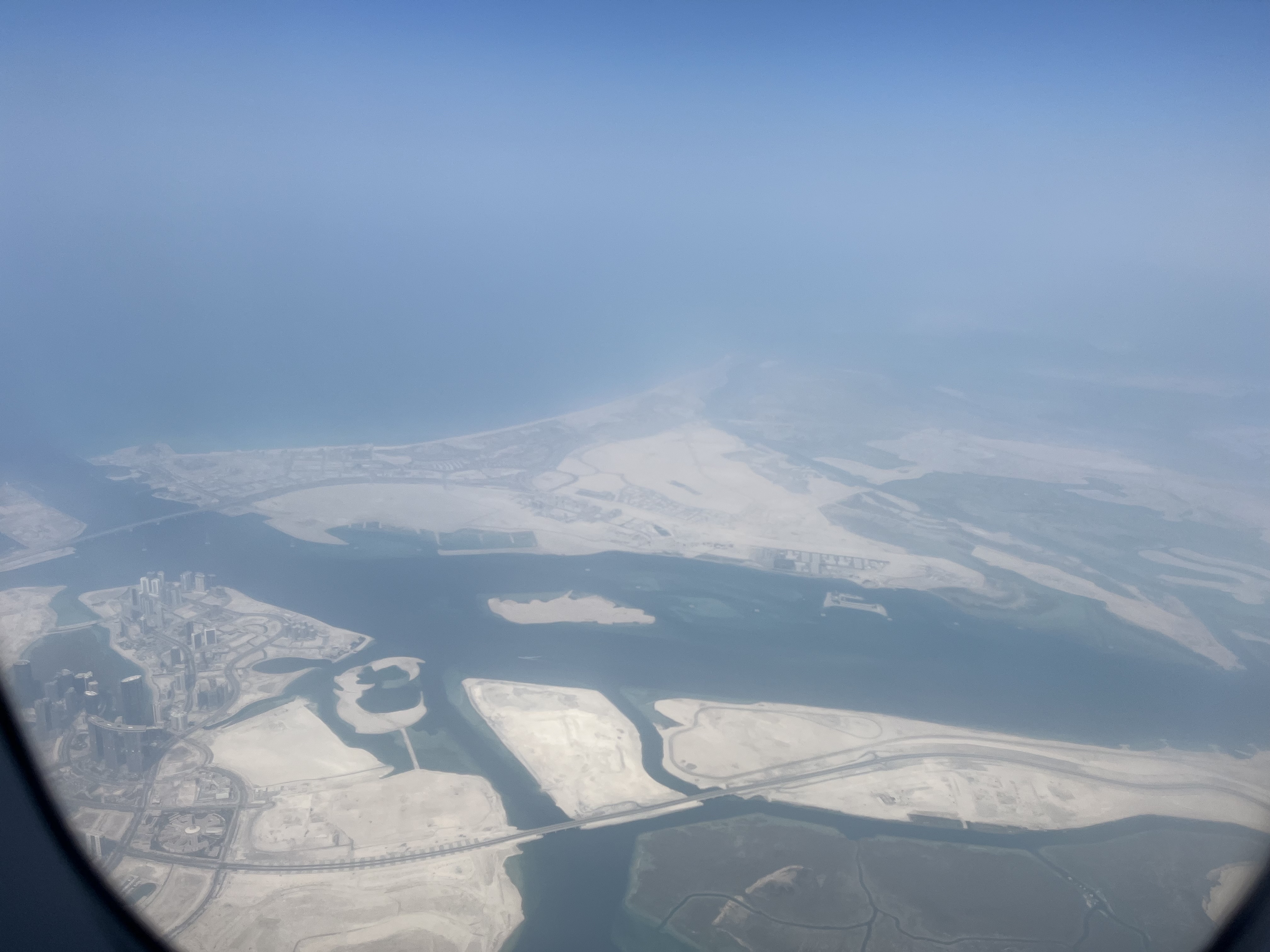 Am zburat direct în Emirate către aeroportul din Abu Dhabi. De la aterizare am admirat cum se extinde orașul. Tot nisipul din imaginea de mai jos a fost ridicat din mare pentru a extinde teritoriul pentru viitoare construcții.