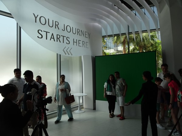 După ce am fost întâmpinați la centrul pentru vizitatori, am fost conduși cu mașinuțe de golf până la insula pe care a fost construit hotelul