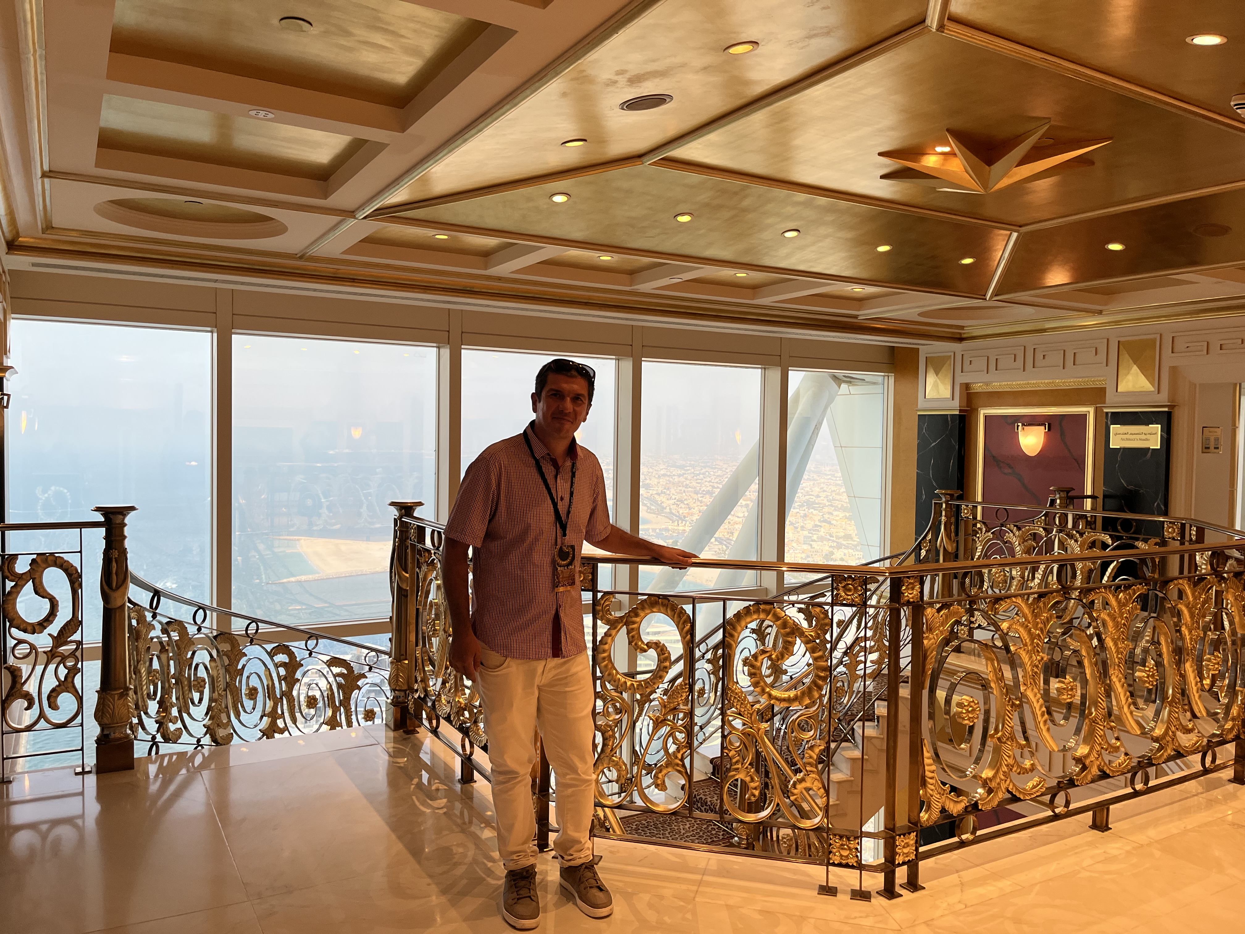 Mai târziu am rezervat un alt tur care era ceva nou pentru mine, la luxosul hotel Burj Al Arab. Acesta este probabil prima mare atracție care a apărut în Dubai (1999), hotelul auto-intitulat de 7 stele menit să atragă milionarii planetei. Un tur la Bur Al Arab costă enorm, dar am zis că măcar acum, a patra oară când ajungeam la Dubai, trebuie să-l fac.