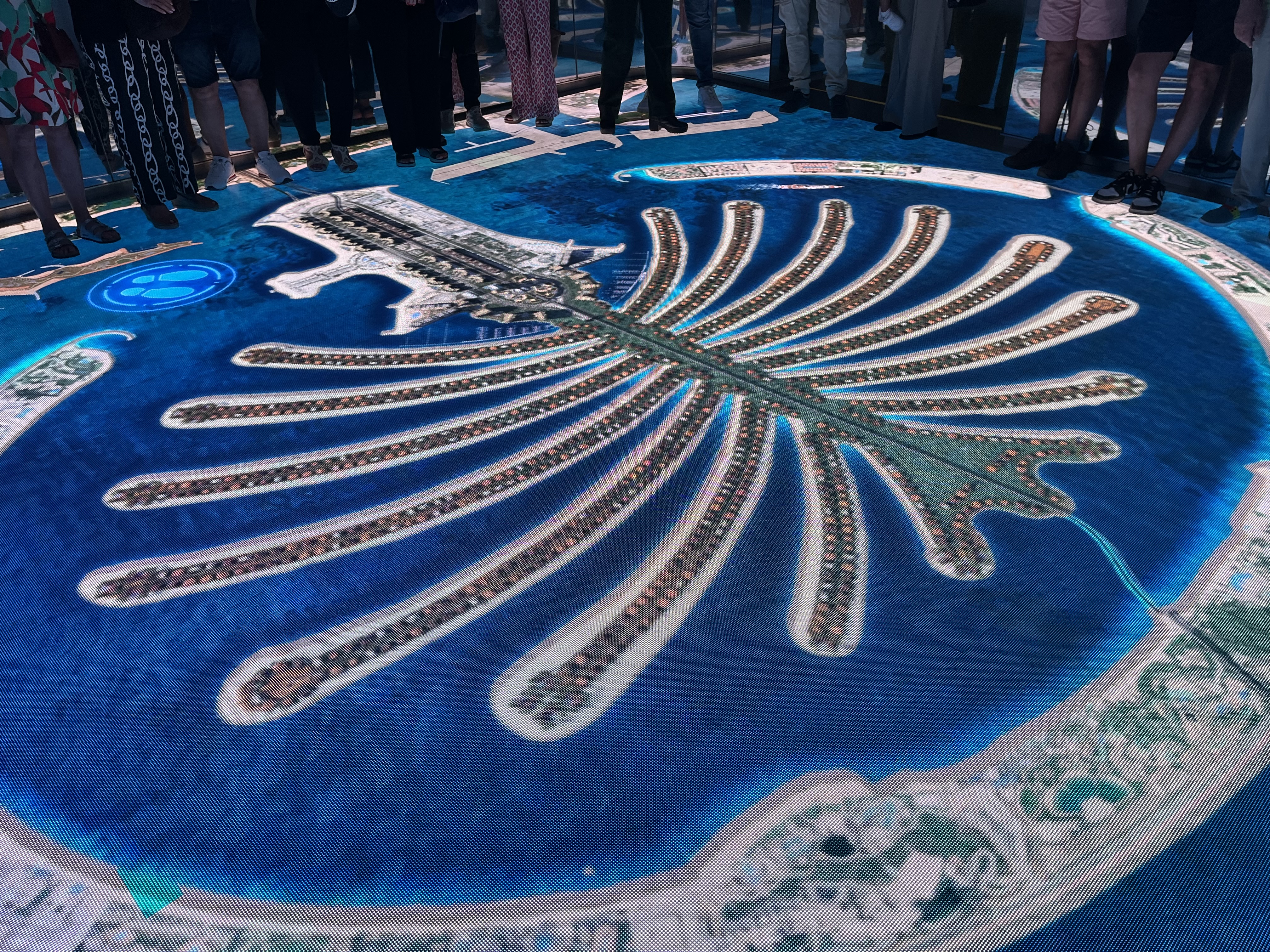 Iar apoi am decis să urcăm la turnul din mijlocul Palm, dacă tot nu urcasem în Burj Khalifa. The View at the Palm este deosebit pentru platforma de observație se află în mijlocul insulei artificiale și oferă niște vederi absolut superbe peste „palmier”. Aici n-am găsit mare aglomerație și am pornit în tur aproape imediat, neavând rezervare.