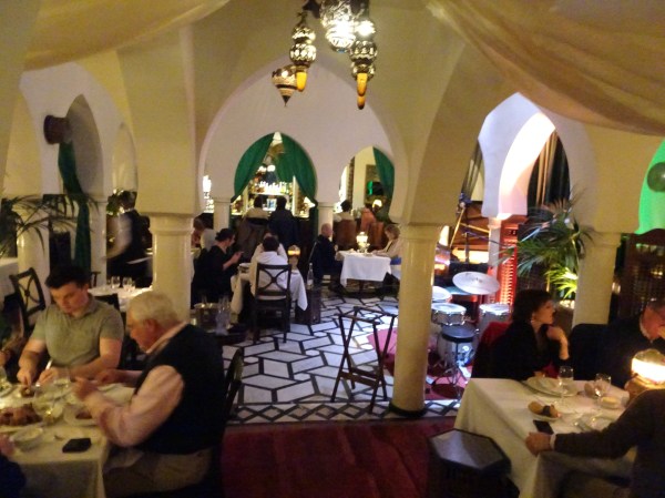 La Rick’s Cafe se ajunge greu fără rezervare și la orice oră există o coadă de așteptare. După vreo două zeci de minute de stat la coadă, am realizat că așteptarea era doar a paznicilor de la intrare să primească șpagă ca să te lase înauntru. Am strecurat 20 de dirhami în buzunar și instant am fost anunțați că s-a eliberat o masă. 🙂