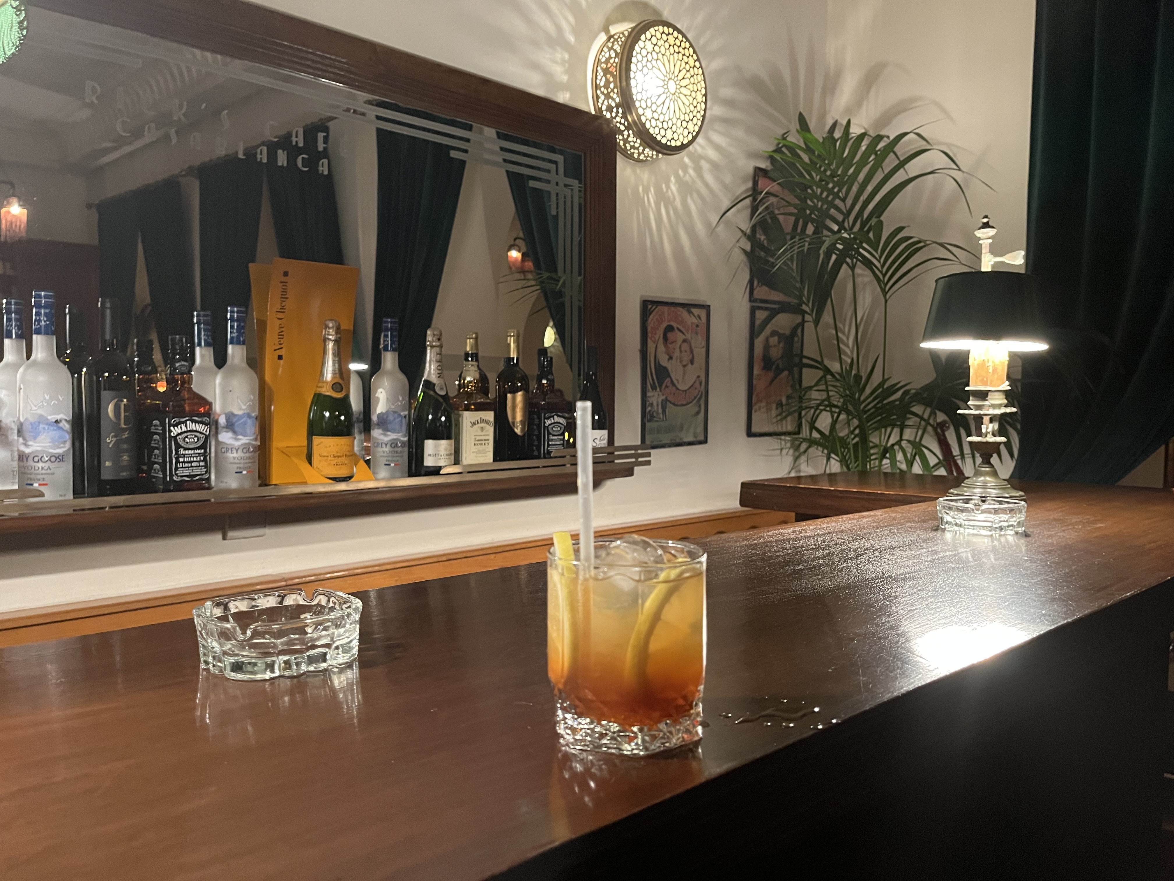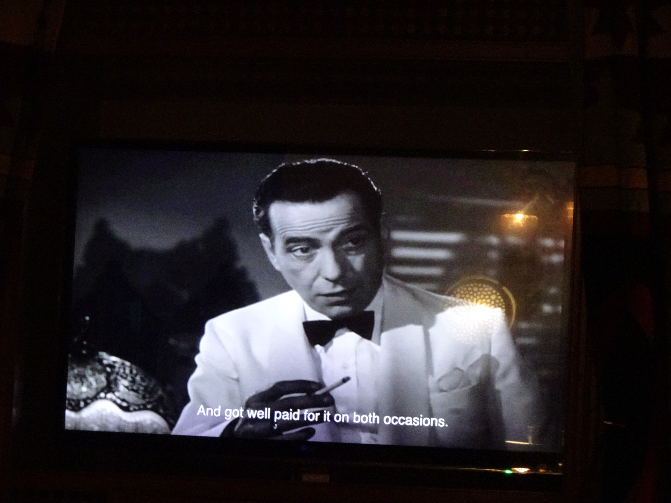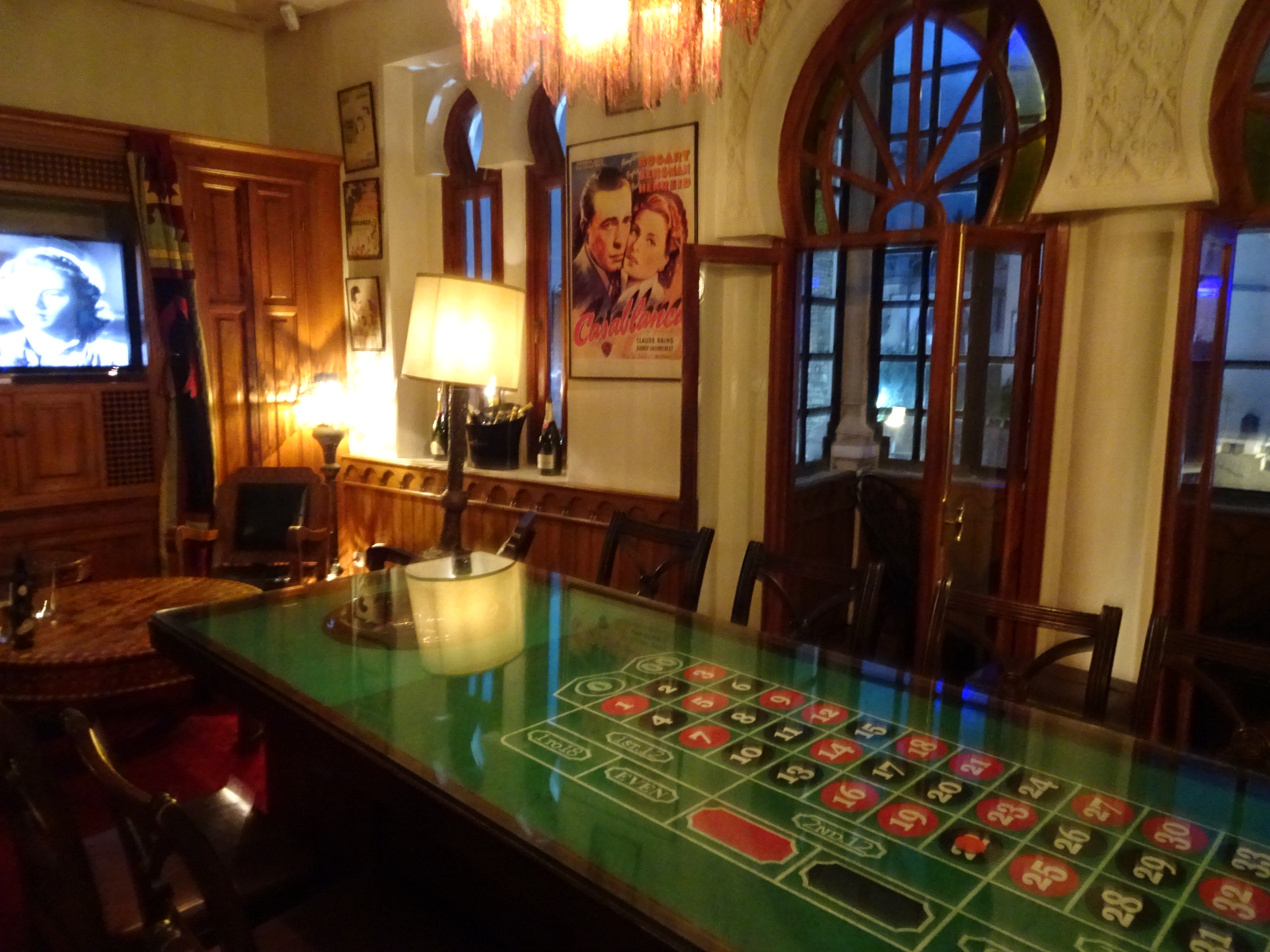 La Rick’s Cafe se ajunge greu fără rezervare și la orice oră există o coadă de așteptare. După vreo două zeci de minute de stat la coadă, am realizat că așteptarea era doar a paznicilor de la intrare să primească șpagă ca să te lase înauntru. Am strecurat 20 de dirhami în buzunar și instant am fost anunțați că s-a eliberat o masă. 🙂