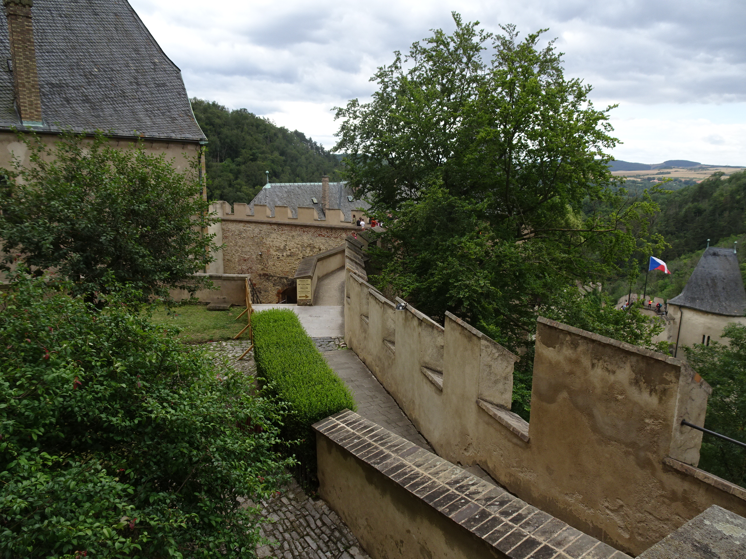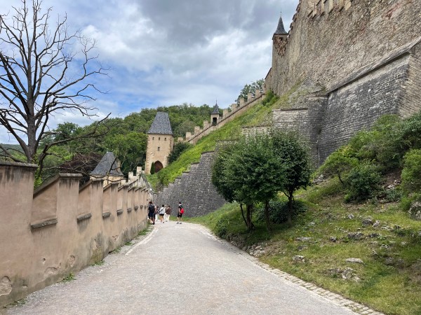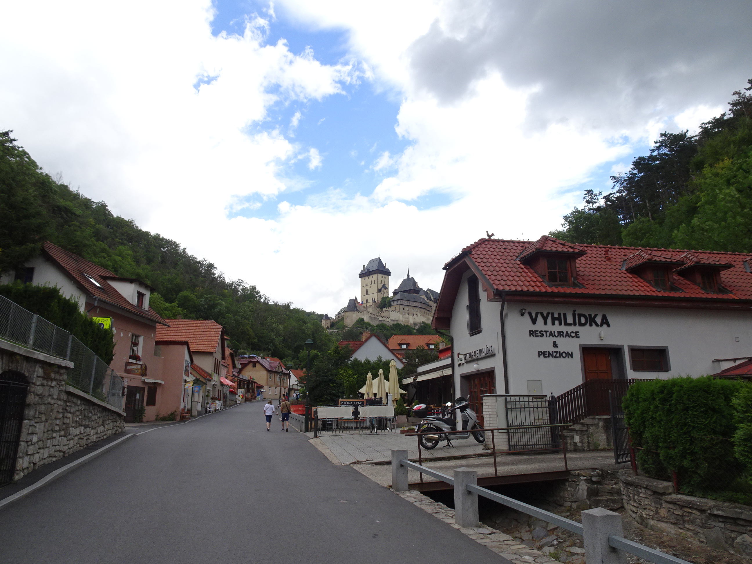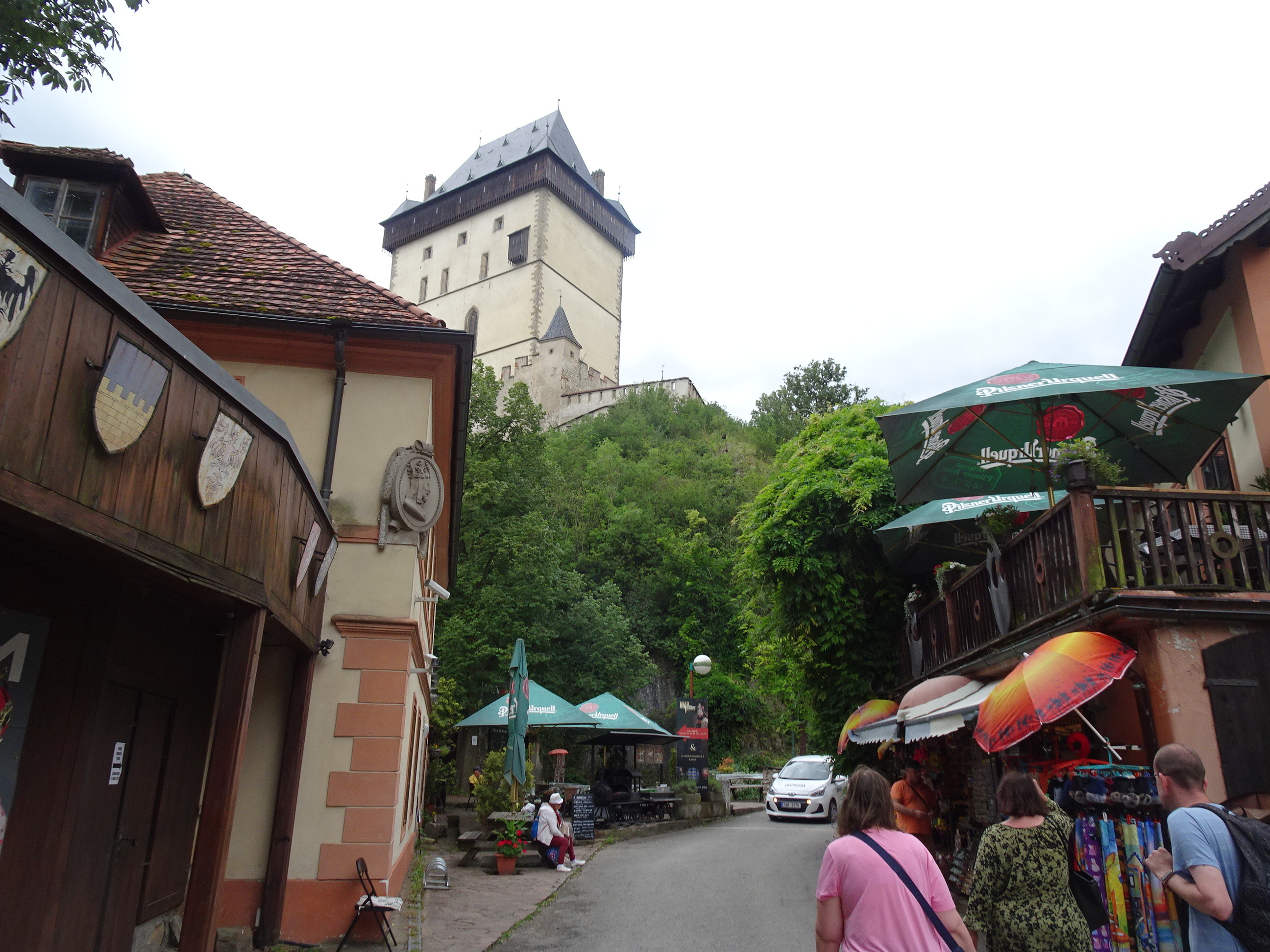 Satul Karlstejn este închis traficului. La intrare este amenajată o parcare mare, de unde se merge vreo 2 kilometri pe jos până la castel.