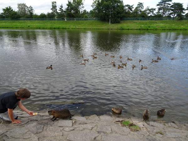 Am ajuns și la un loc fascinant unde se pot vedea nutriile care locuiesc în râul Vltava. Localnicii obișnuiesc să vină să-i hrănească