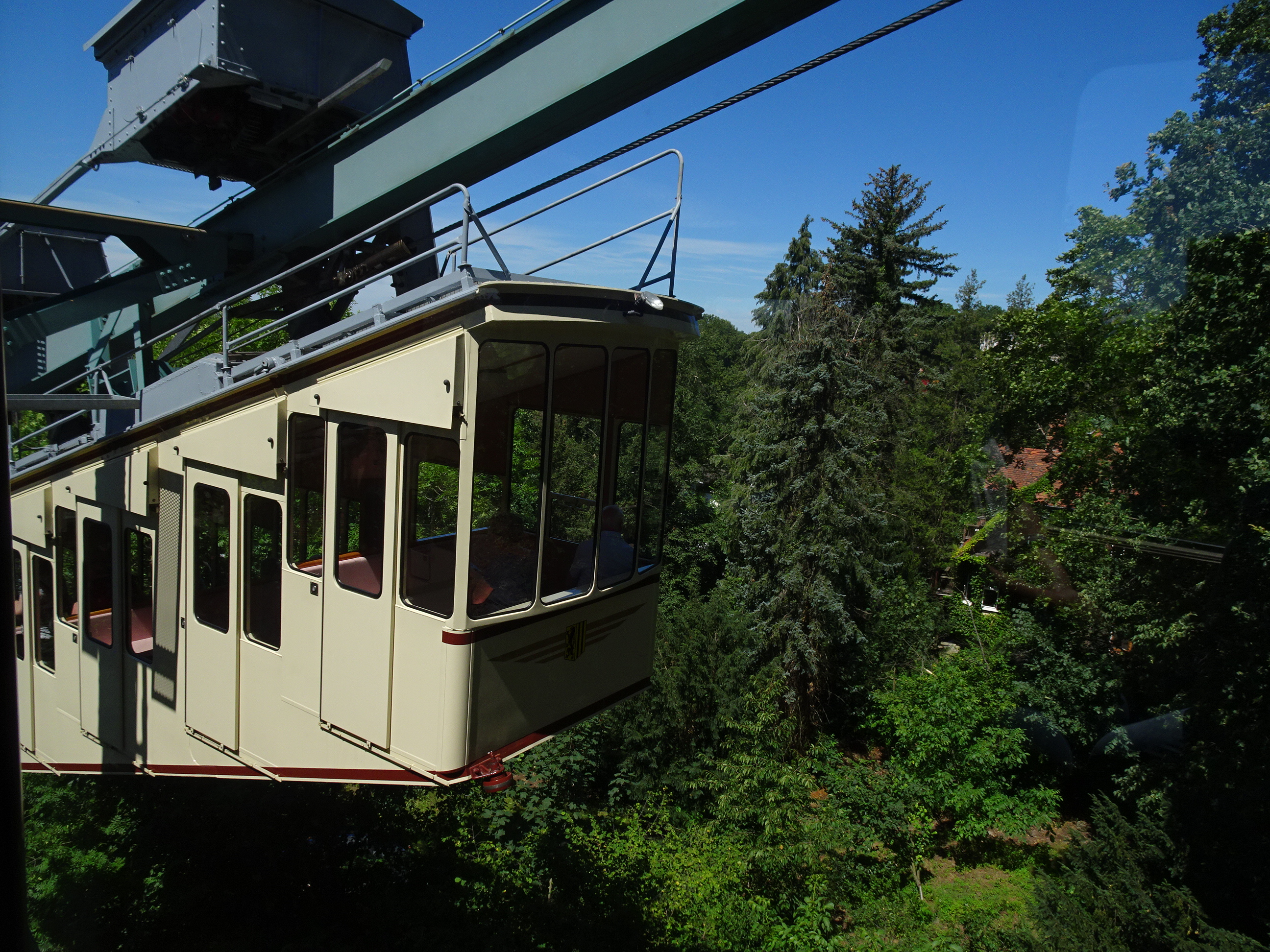 Am oprit întâi la Schwebebahn. Acesta este un funicular suspendat care conectează două cartiere de pe dealurile din estul orașului. Este o construcție inginerească unică în lume ce datează din 1901.