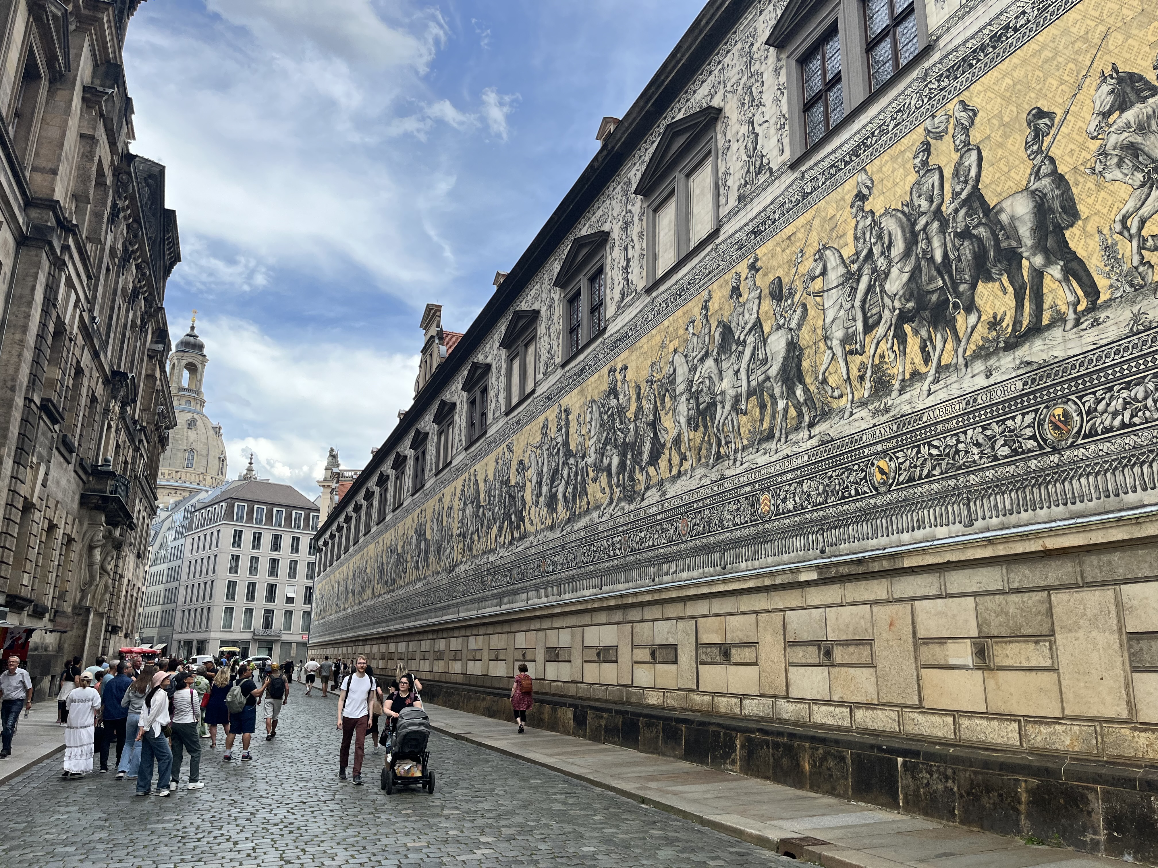 Am încheiat plimbarea pe cea mai frumoasă stradă din oraș, Augustus Strasse. Acolo se află uriașul mozaic unde sunt reprezentați toți conducătorii saxoni