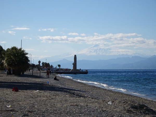 Cea mai frumoasă vedere cu vulcanul Etna nu este în Sicilia, ci de pe malul celălalt, de la plaja din Reggio Calabria