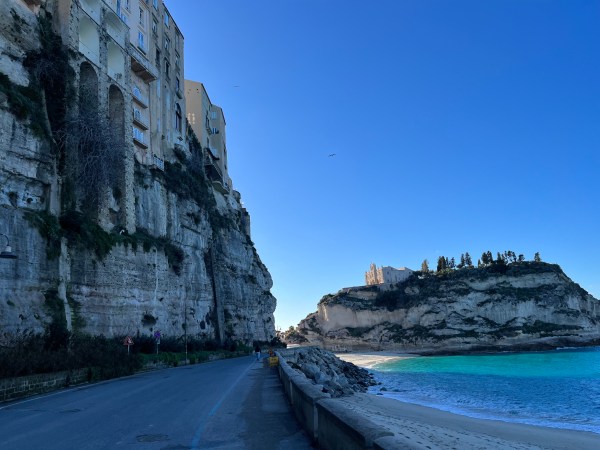 Pentru că vremea era așa frumoasă nu am mers întâi la hotel, ci direct către plaja din Tropea. Am înțeles imediat de ce locul este atât de apreciat de italieni. Plaja are nisip alb, fin, o mare foarte limpede iar peisajul sub stâncile abrupte este superb.